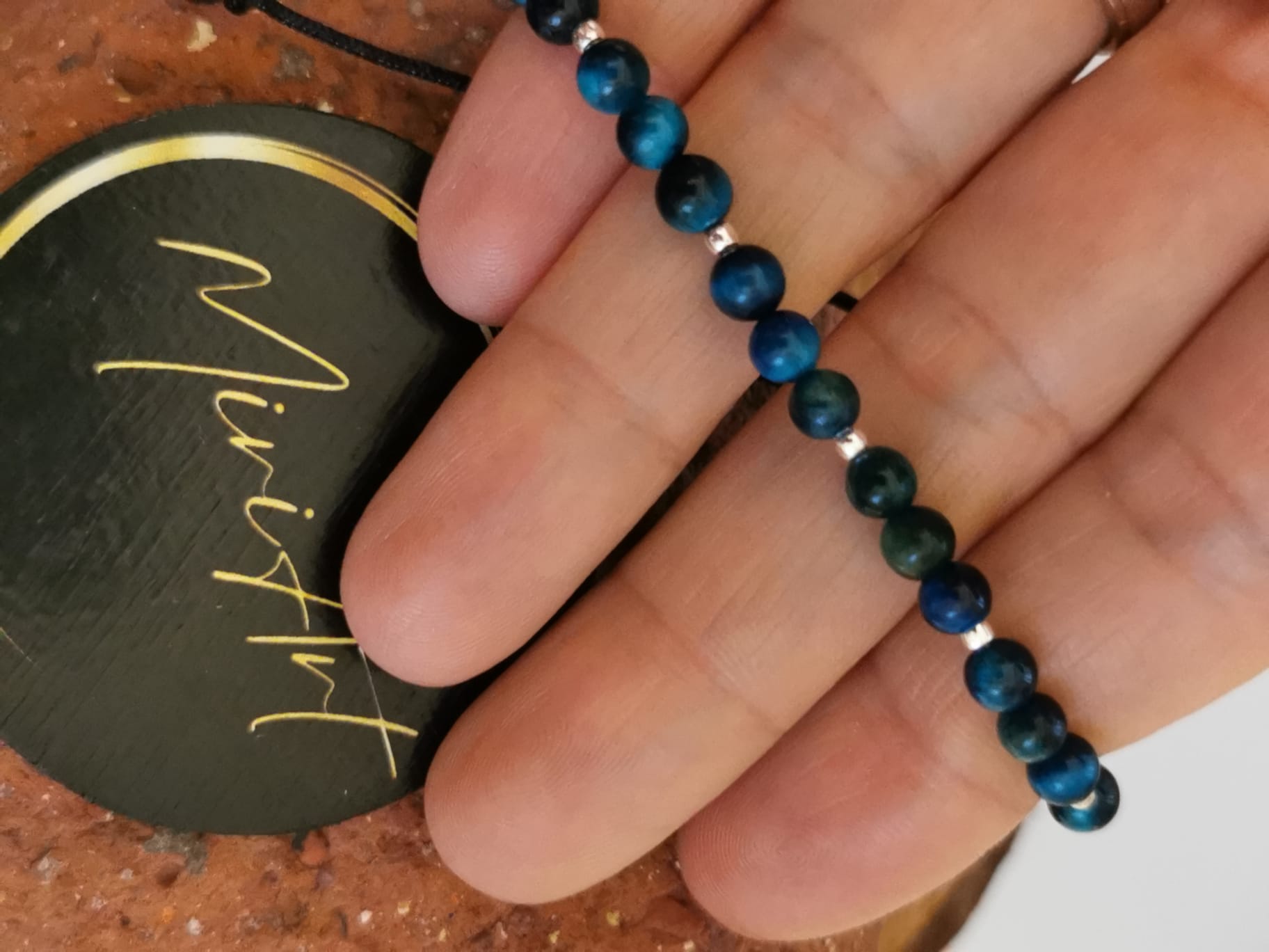 Brățară handmade cu 8 sfere de 2mm argint925, pietre semiprețioase și închidere împletită, reglabilă.
