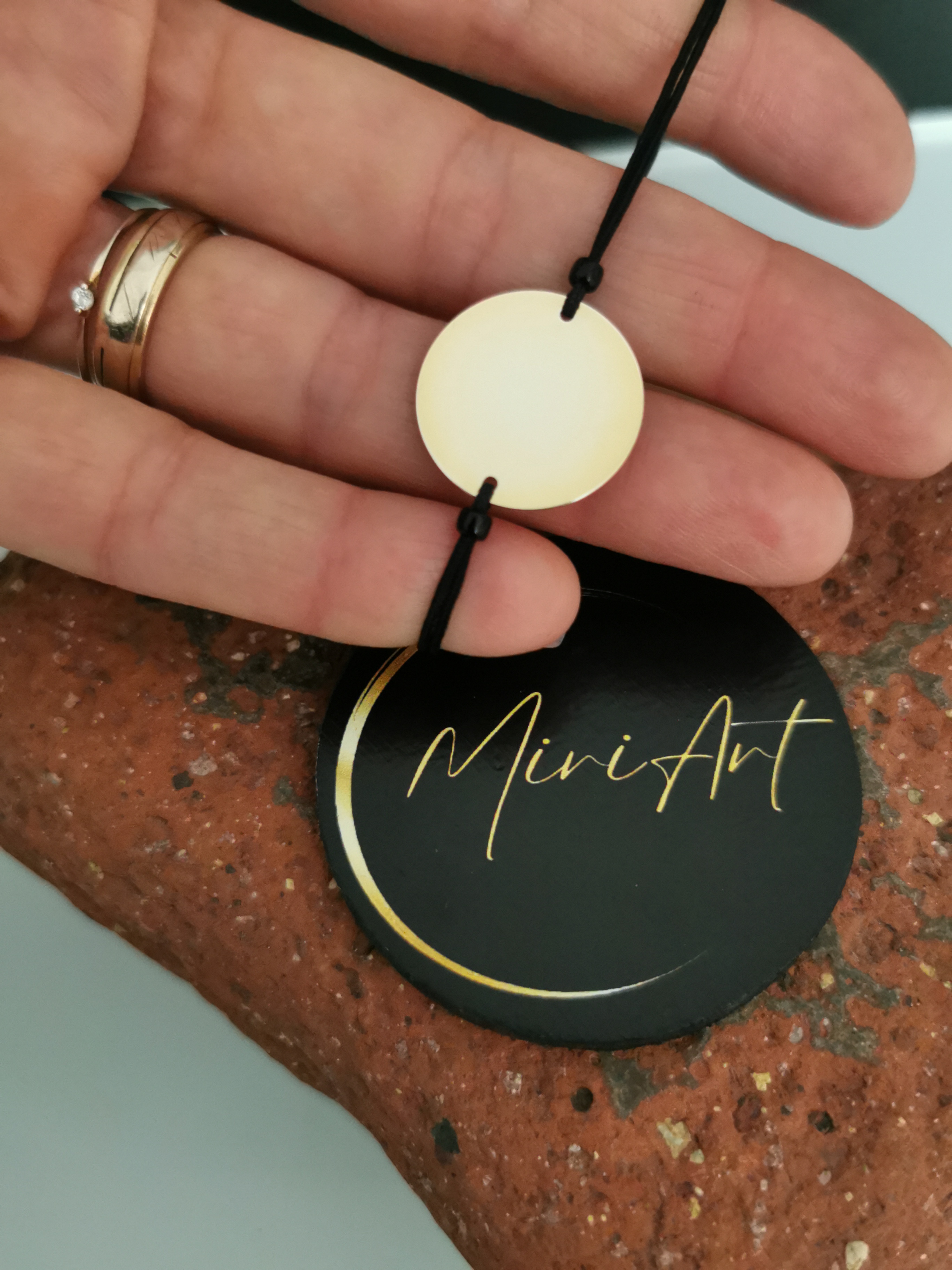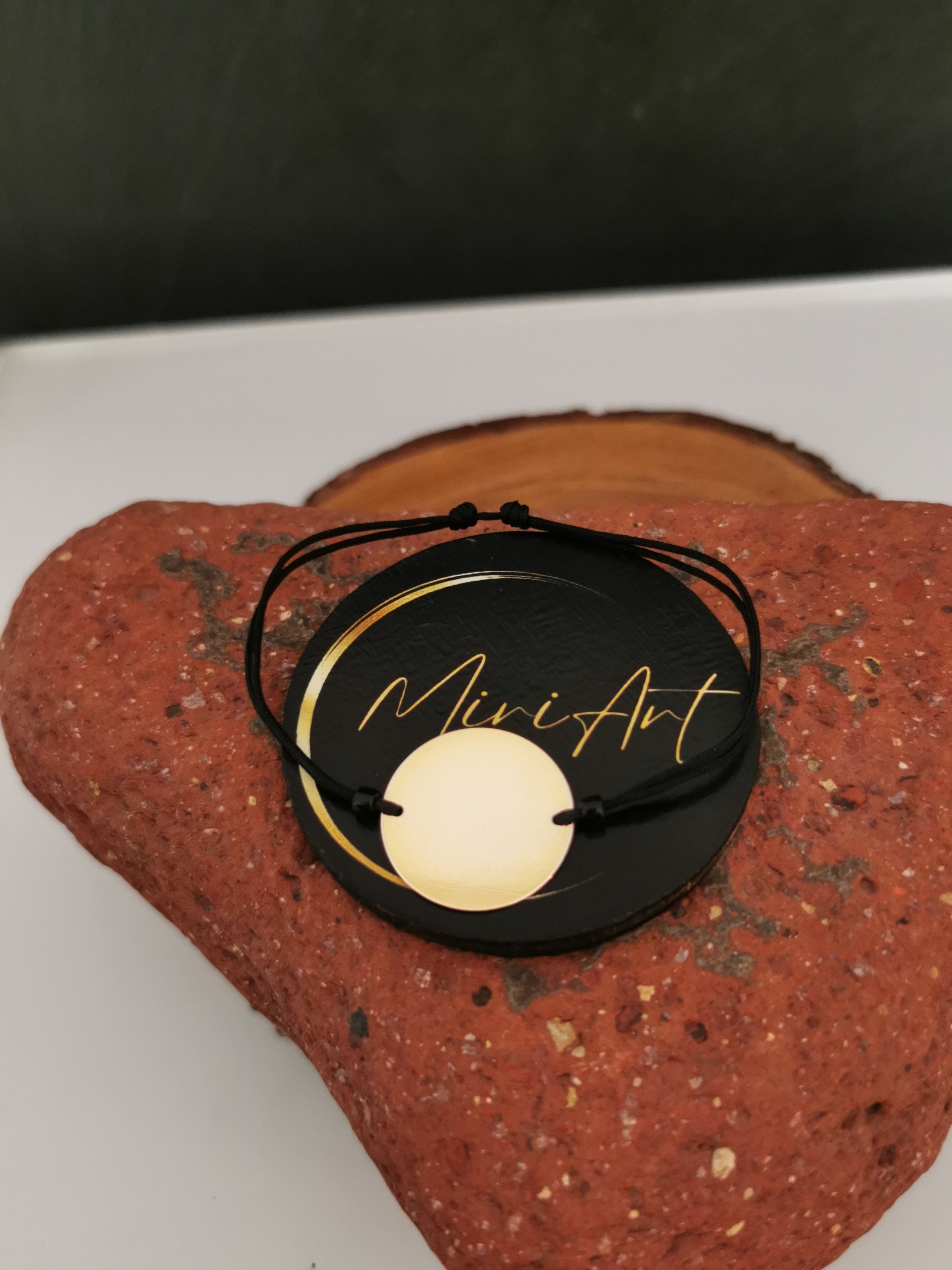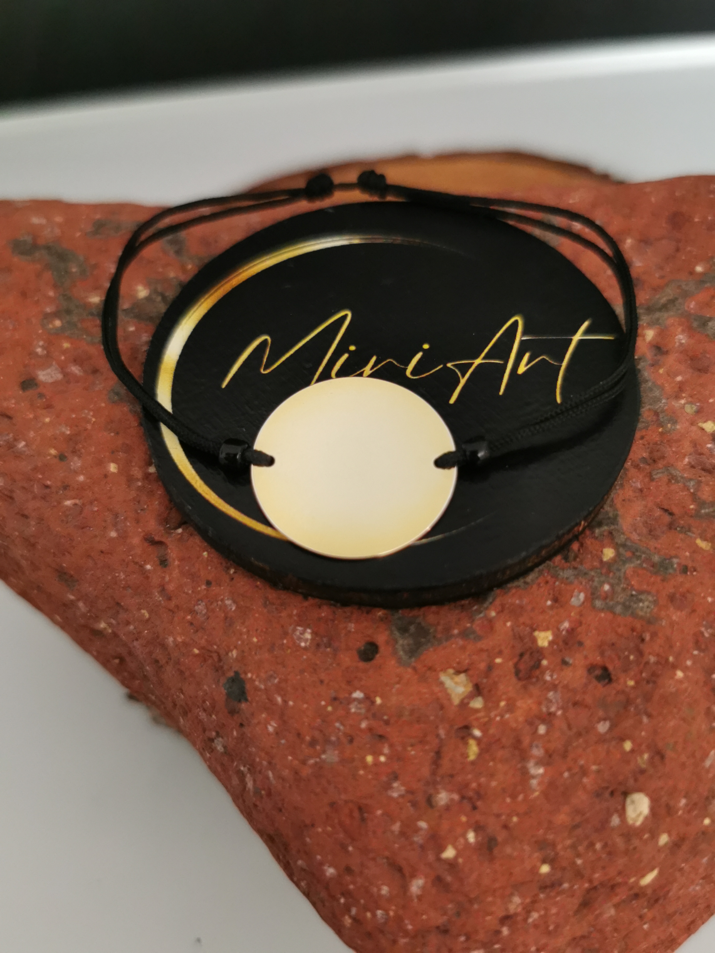 Brățară handmade cu pandantiv de argint 925 placat cu aur de 18mm, montat pe un șnur rezistent, cu închidere reglabilă cu noduri, ușor de ajustat și se potrivește oricărei încheieturi.