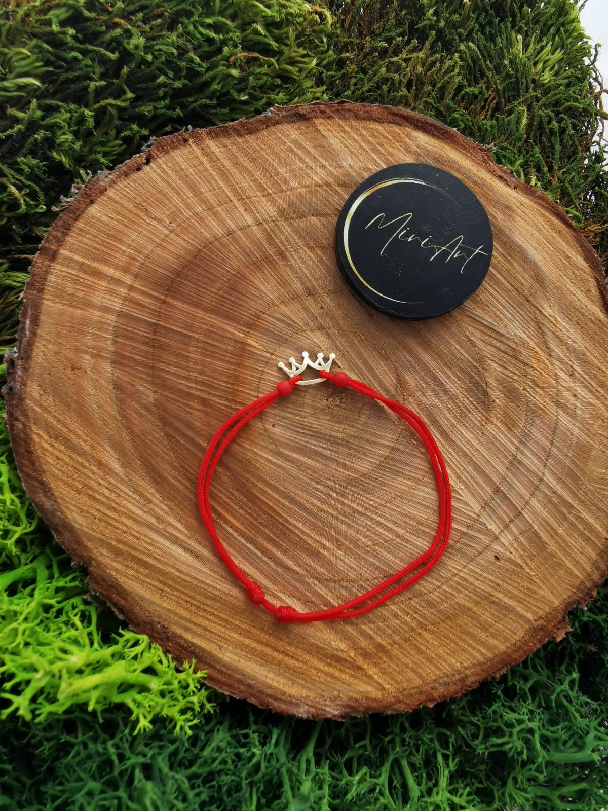 Brățară handmade cu pandantiv coroniță din aur 14k, montat pe un șnur rezistent, cu închidere reglabilă cu noduri, ușor de ajustat și se potrivește oricărei încheieturi.