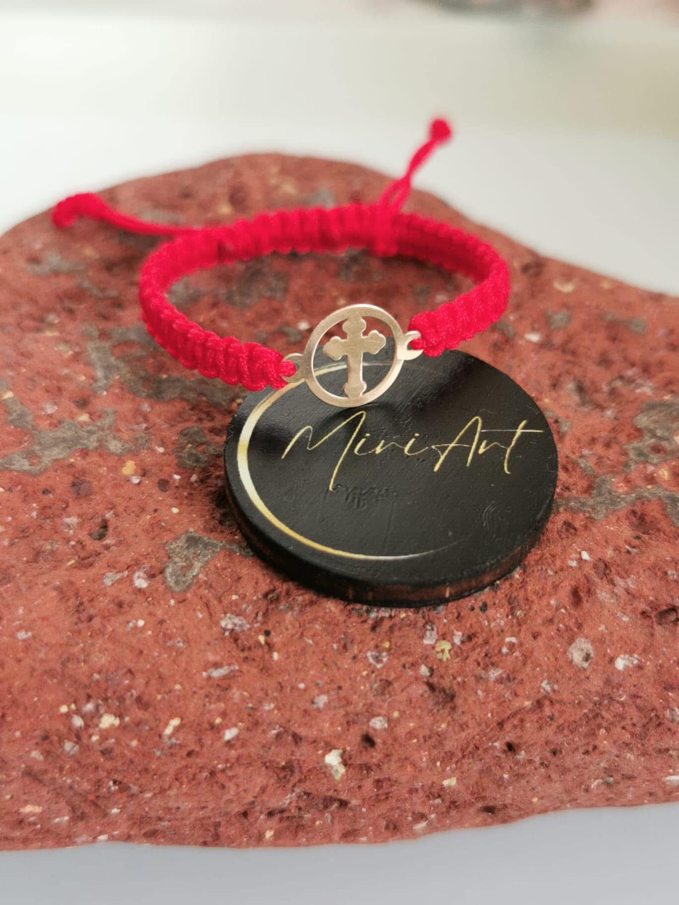 Brățară handmade împletită cu pandantiv cruce din aur 14k și închidere împletită, reglabilă, ușor de ajustat și se potrivește oricărei încheieturi.