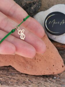 Bratara handmade cu pandantiv de aur 14k si inchidere cu noduri.