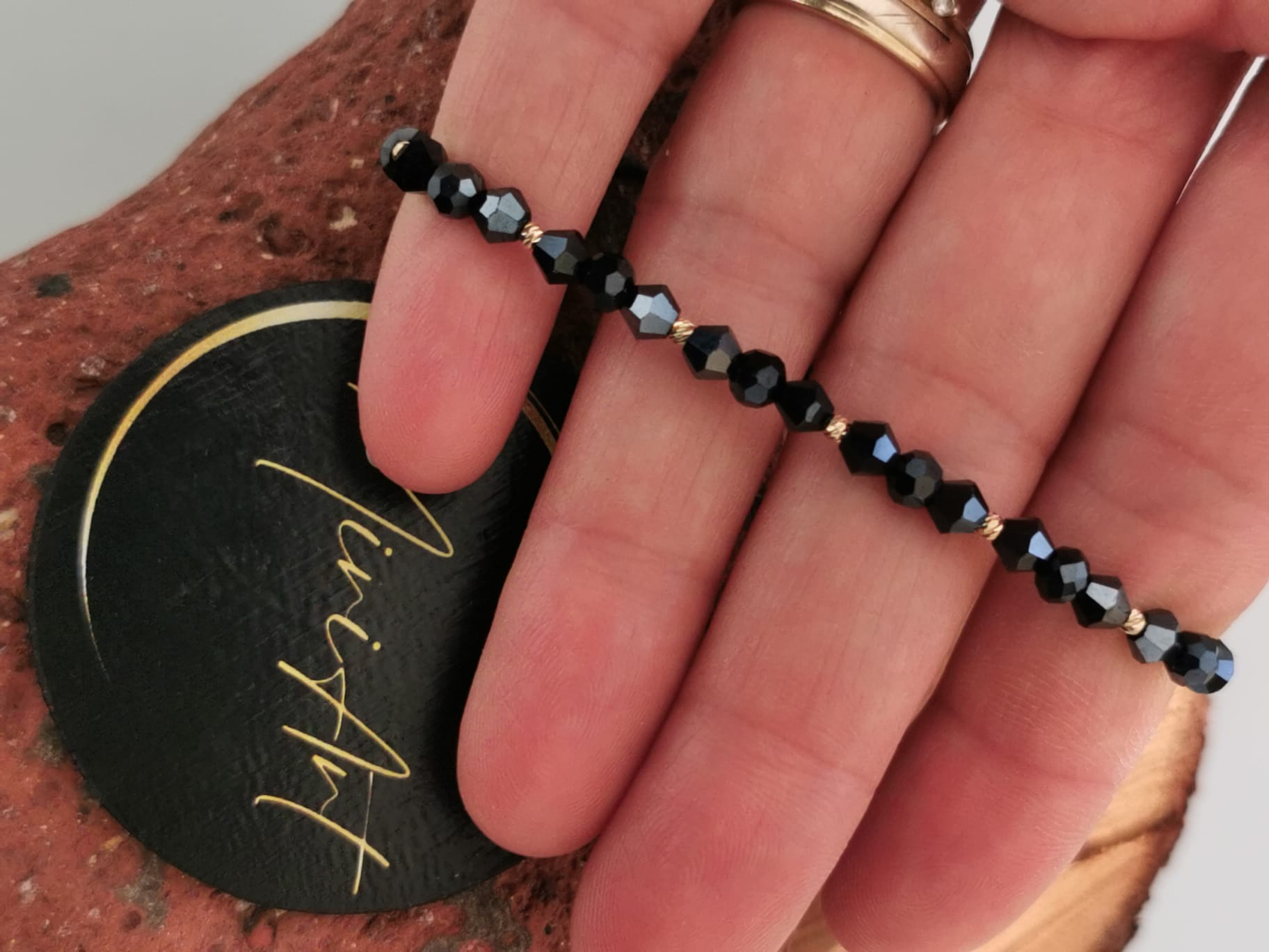 Brățară handmade cu 8 sfere de 2mm aur 14k, cristale de sticlă și închidere împletită, reglabilă, ușor de ajustat și se potrivește oricărei încheieturi.