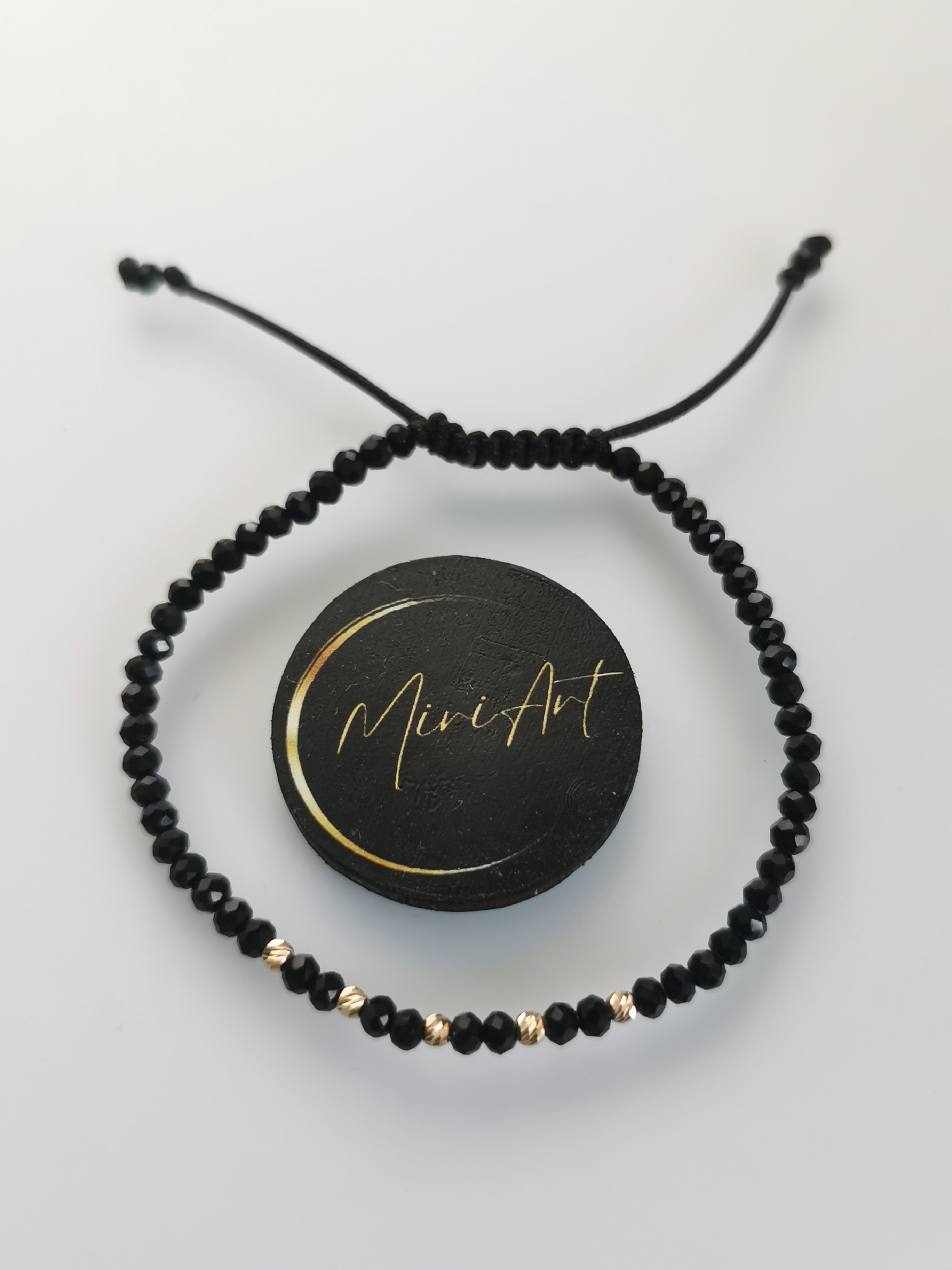 Brățară handmade cu 5 sfere de 2,5mm aur 14k, cristale de sticlă și închidere împletită, reglabilă, ușor de ajustat și se potrivește oricărei încheieturi.