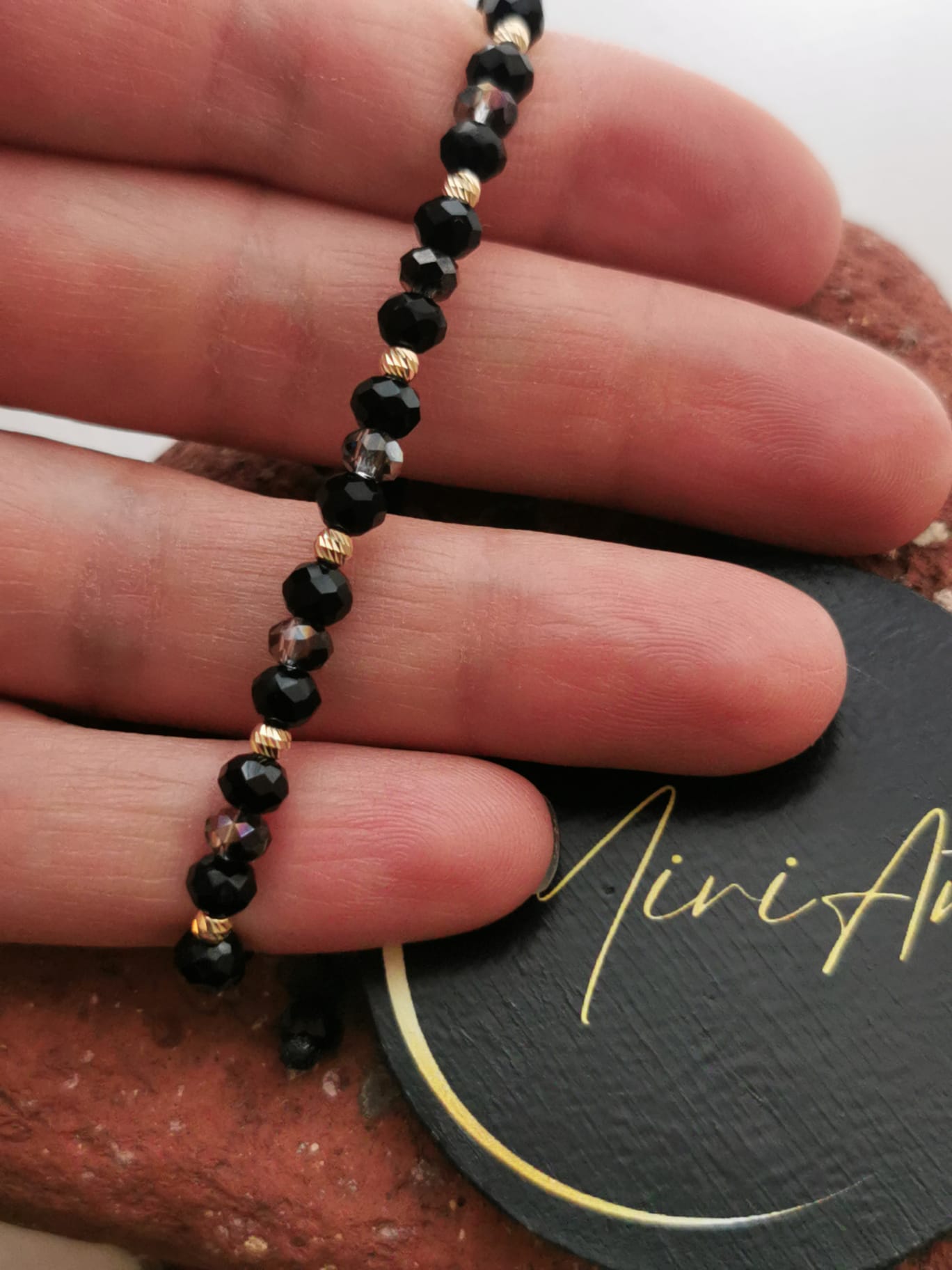 Brățară handmade cu 8 sfere de 2,5mm aur 14k, cristale de sticlă și închidere împletită, reglabilă, ușor de ajustat și se potrivește oricărei încheieturi.