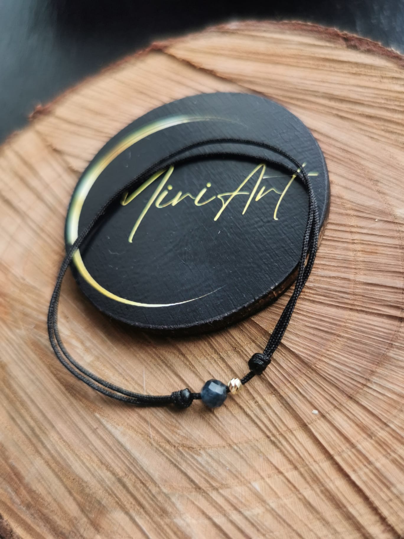 Brățară handmade cu 1 sferă de 2,5mm aur 14k, piatră semiprețioasă și închidere reglabilă, cu noduri.