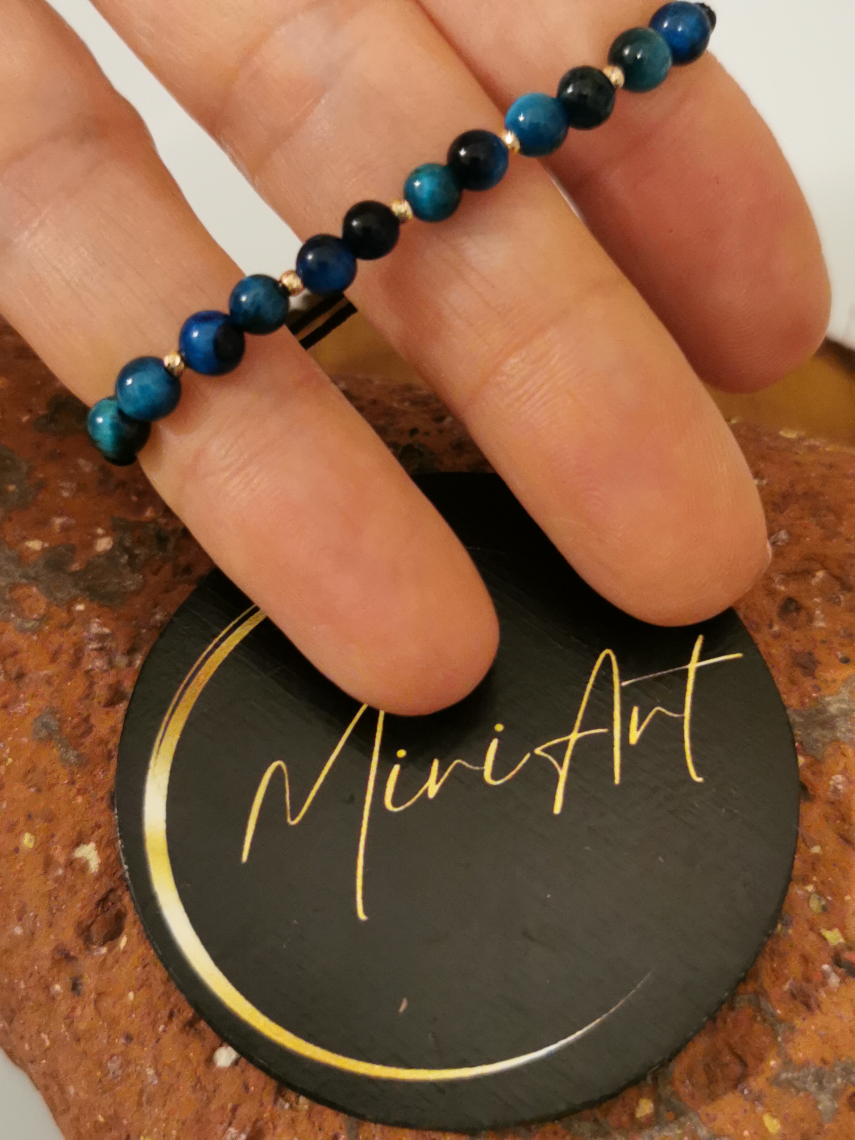Brățara Energia Tigrului Albastru realizată din Ochi de Tigru de 4mm –  această brățară inspiră claritate mentală, protecție și forță interioară. Reflexele adânci de albastru oferă o prezență vizuală elegantă, dar intensă, echilibrând calmul cu încrederea în sine.