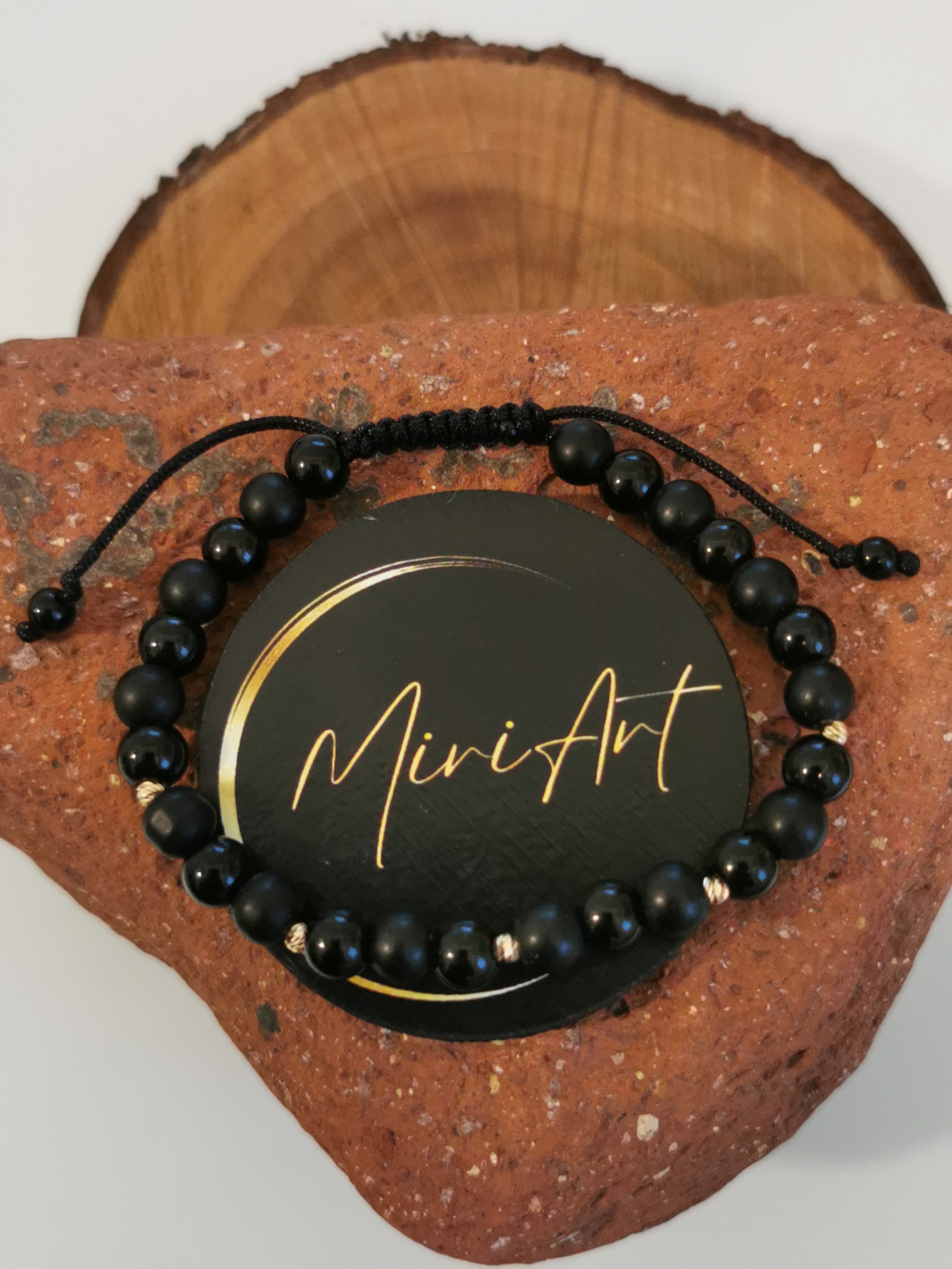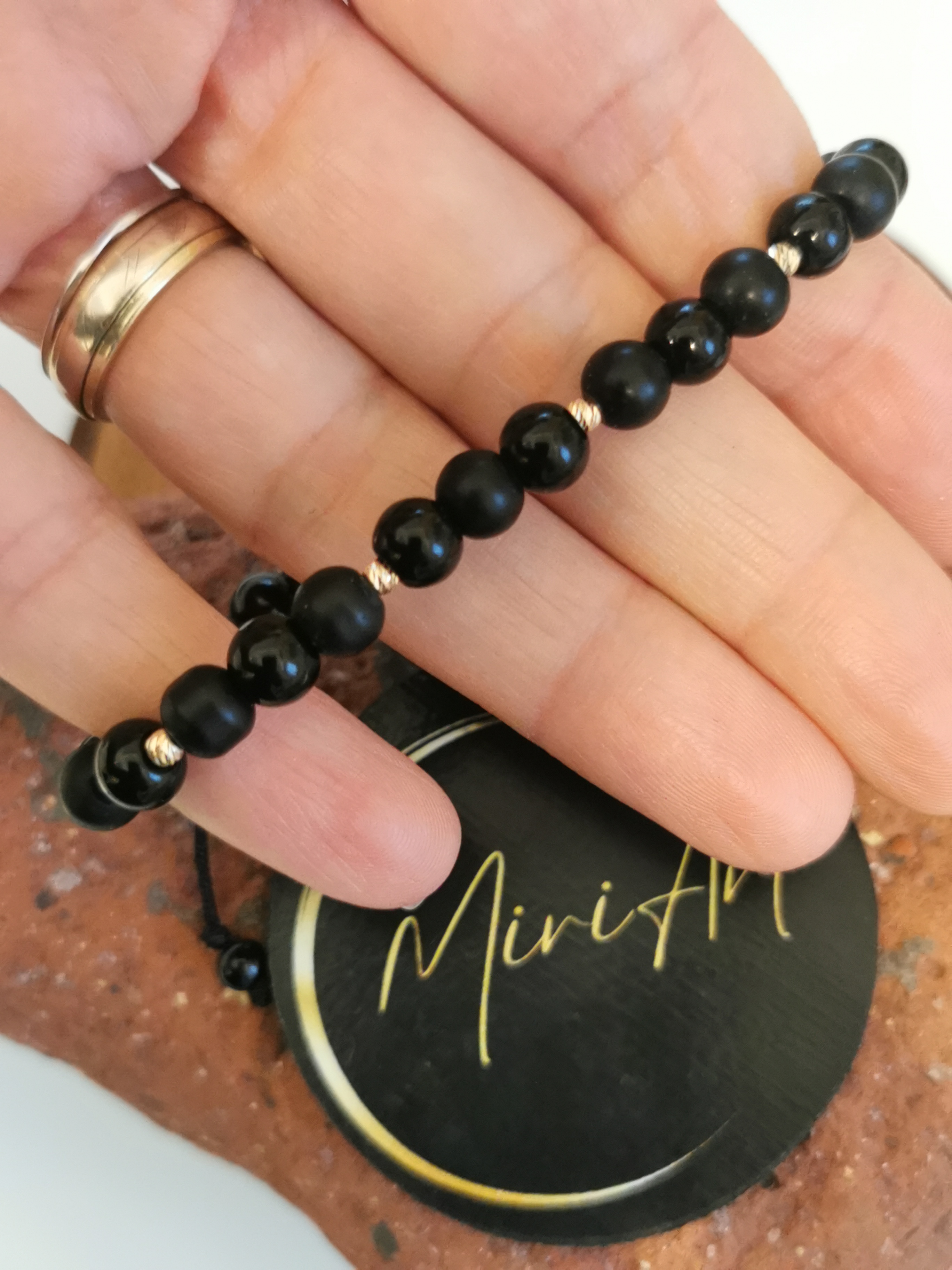 Brățara Mister de Onix  - Designul sobru pune în valoare proprietățile naturale ale Onixului de 6mm– piatra protecției și a echilibrului interior.