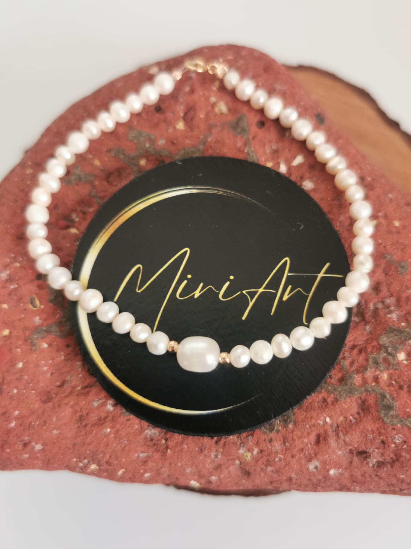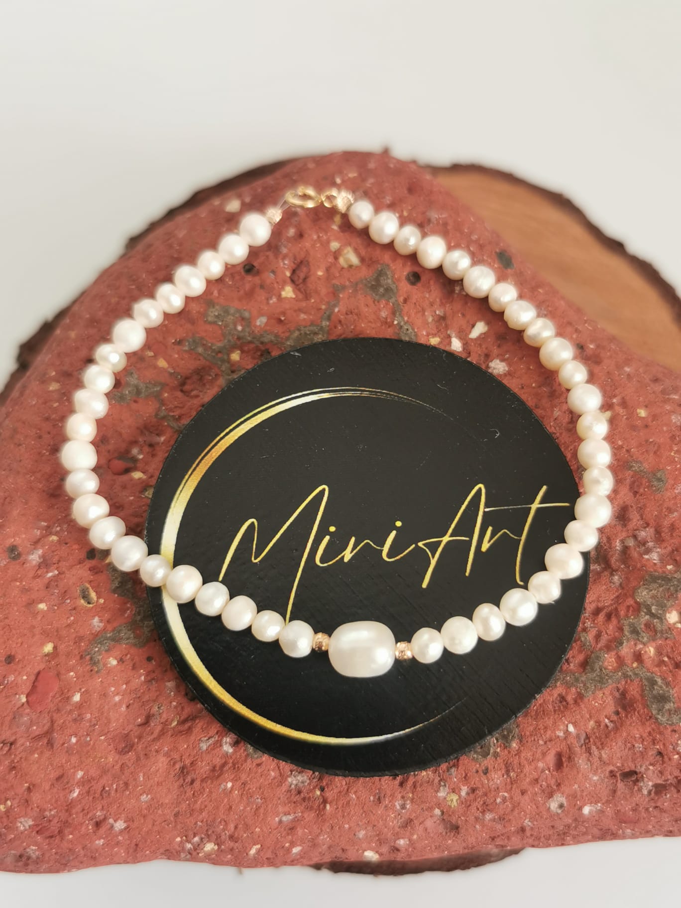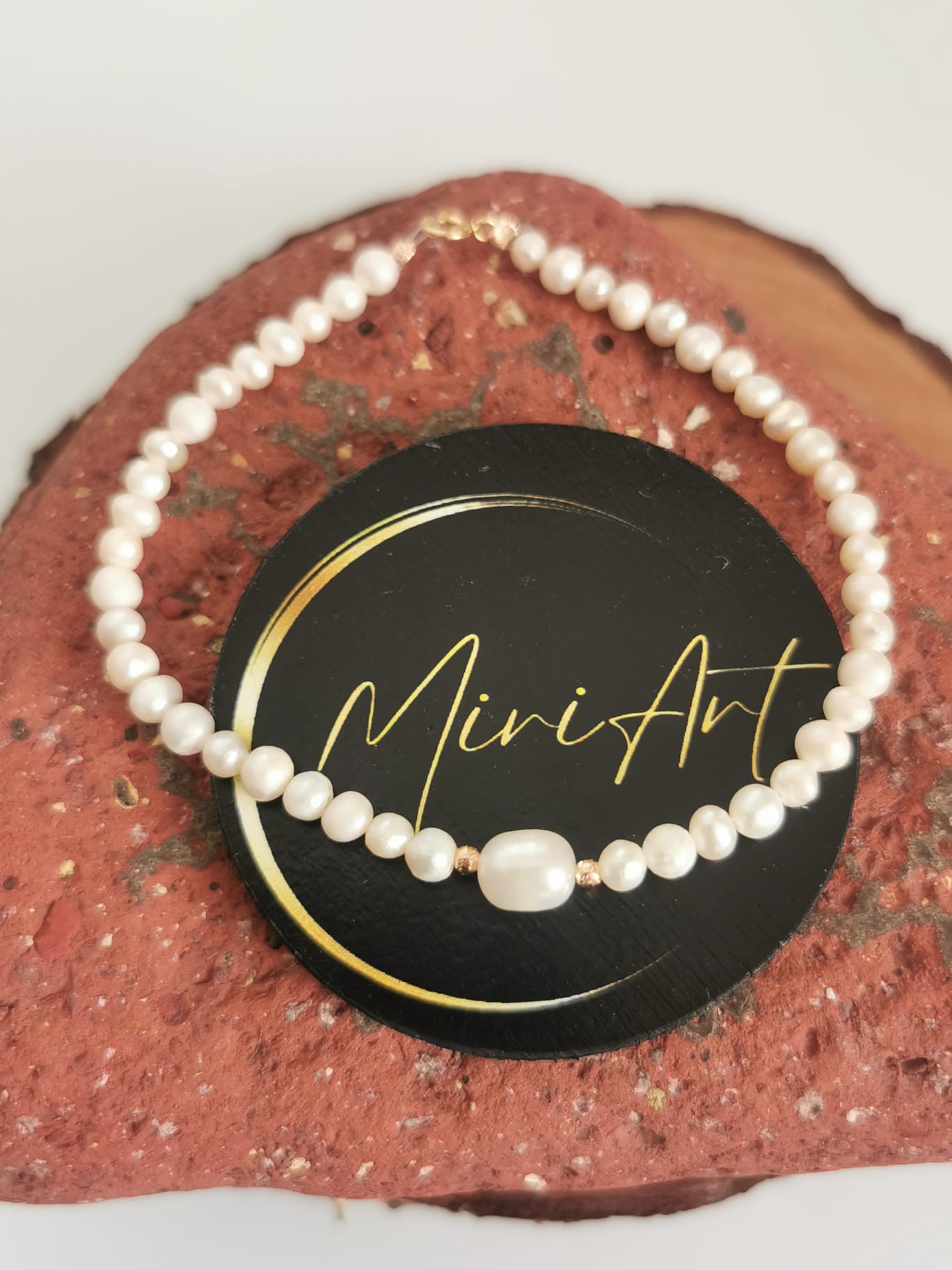Brățara Val de Perlă - Perlele de cultură de 3-4mm / 5-7mm - simbol al purității, eleganței și feminității, montate pe un fir transparent, oferind un efect vizual delicat.