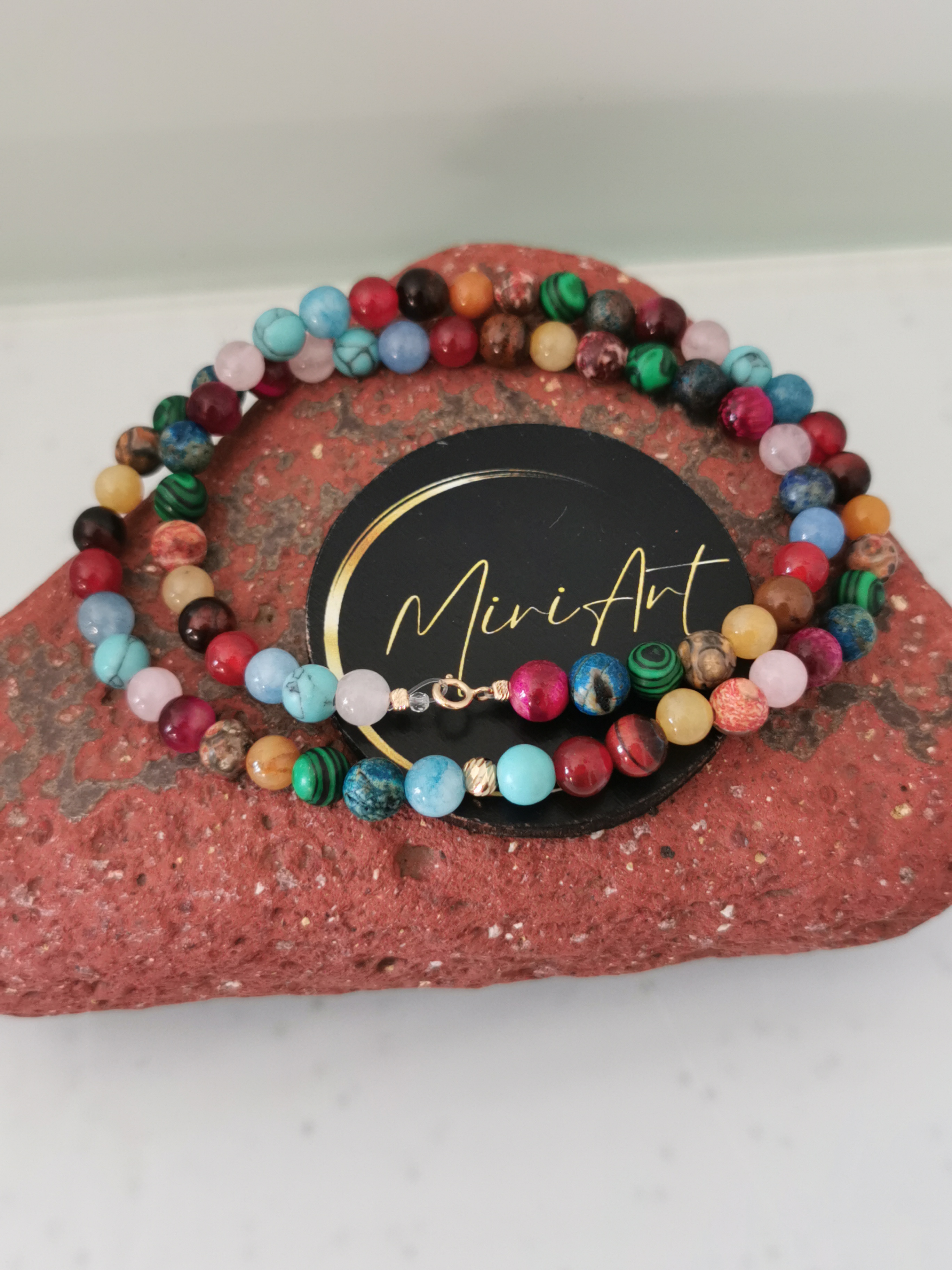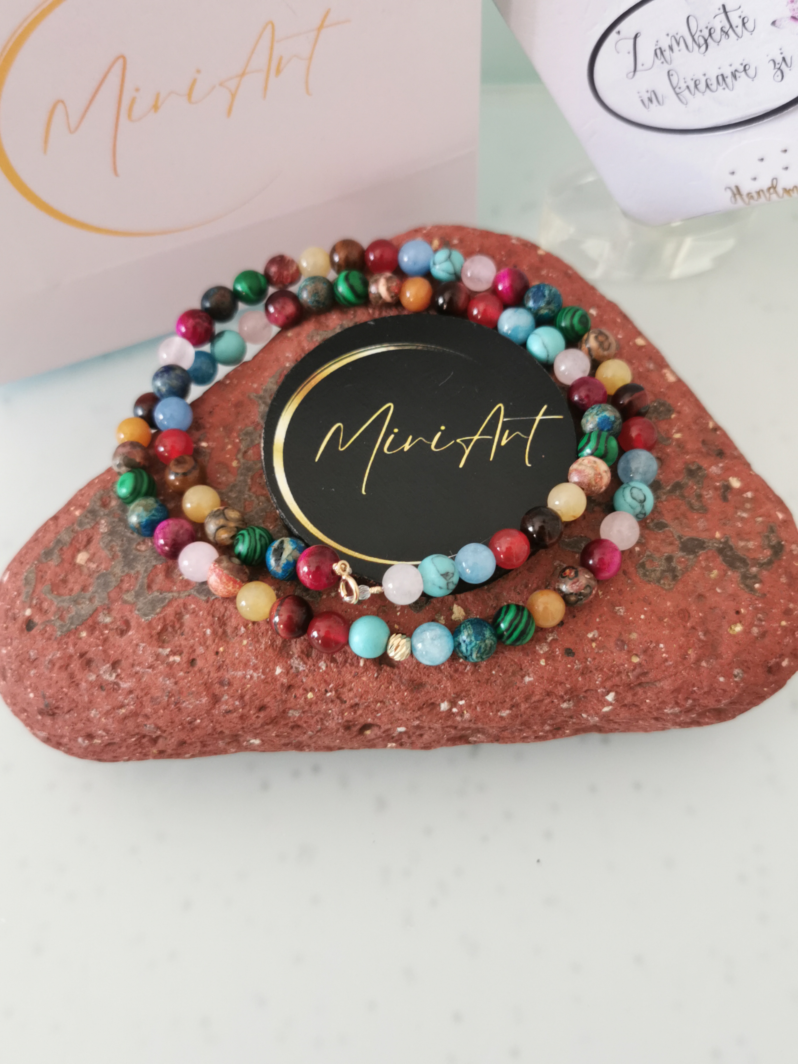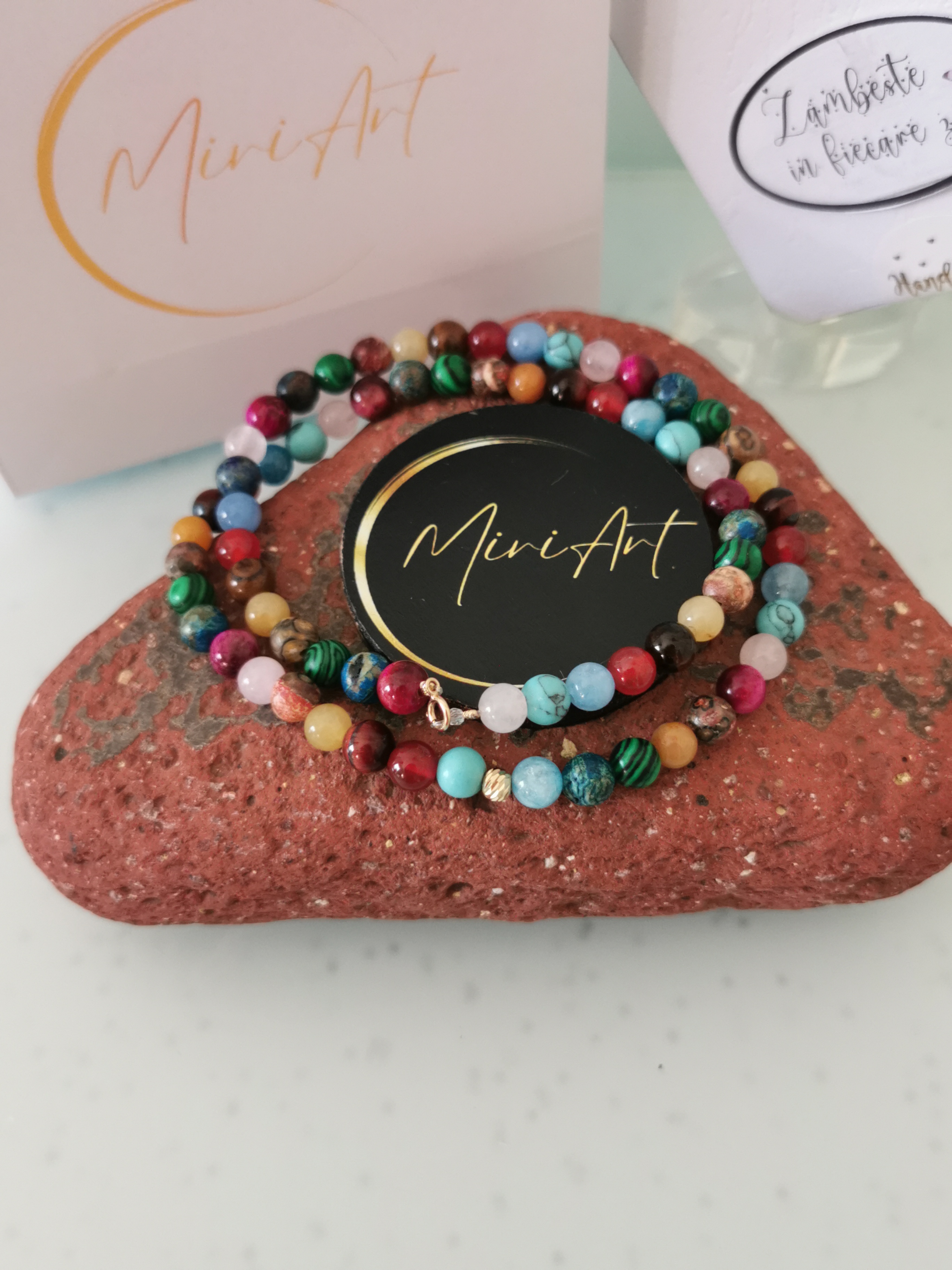 Realizat dintr-o selecție atentă de pietre semiprețioase de 6mm, fiecare element adaugă un strat de sens și energie.