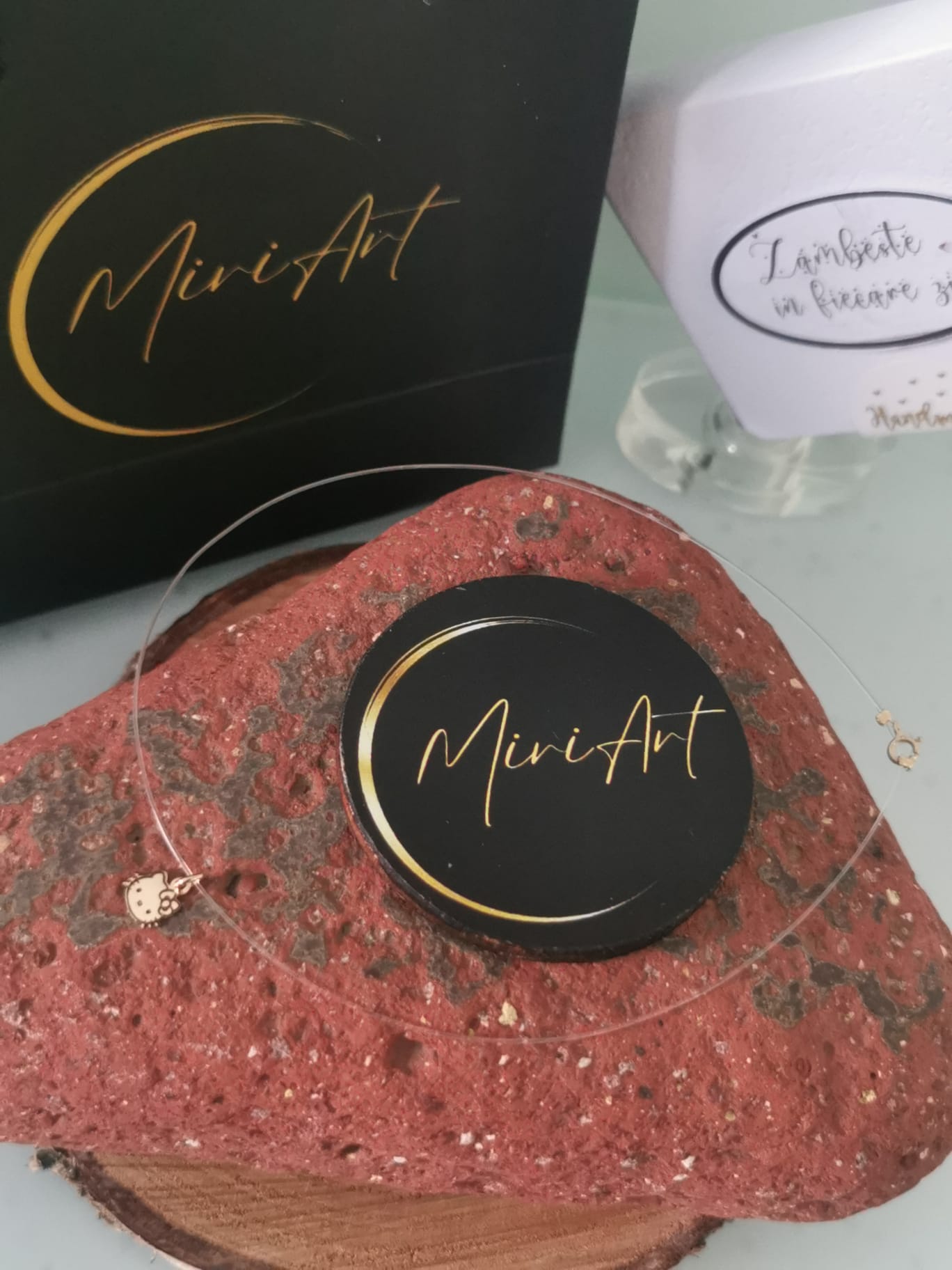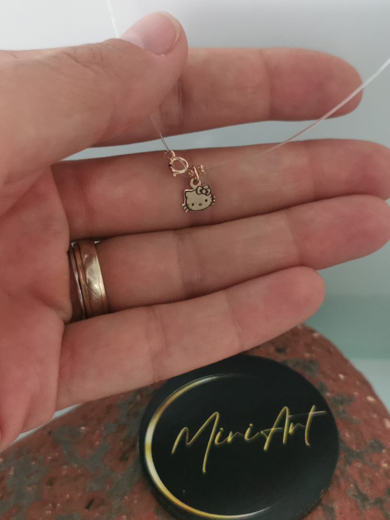 Realizat pe fir transparent, colierul aduce în prim-plan un pandantiv Hello Kitty din aur 14k, cu detalii delicate care exprimă blândețe, puritate și veselie.