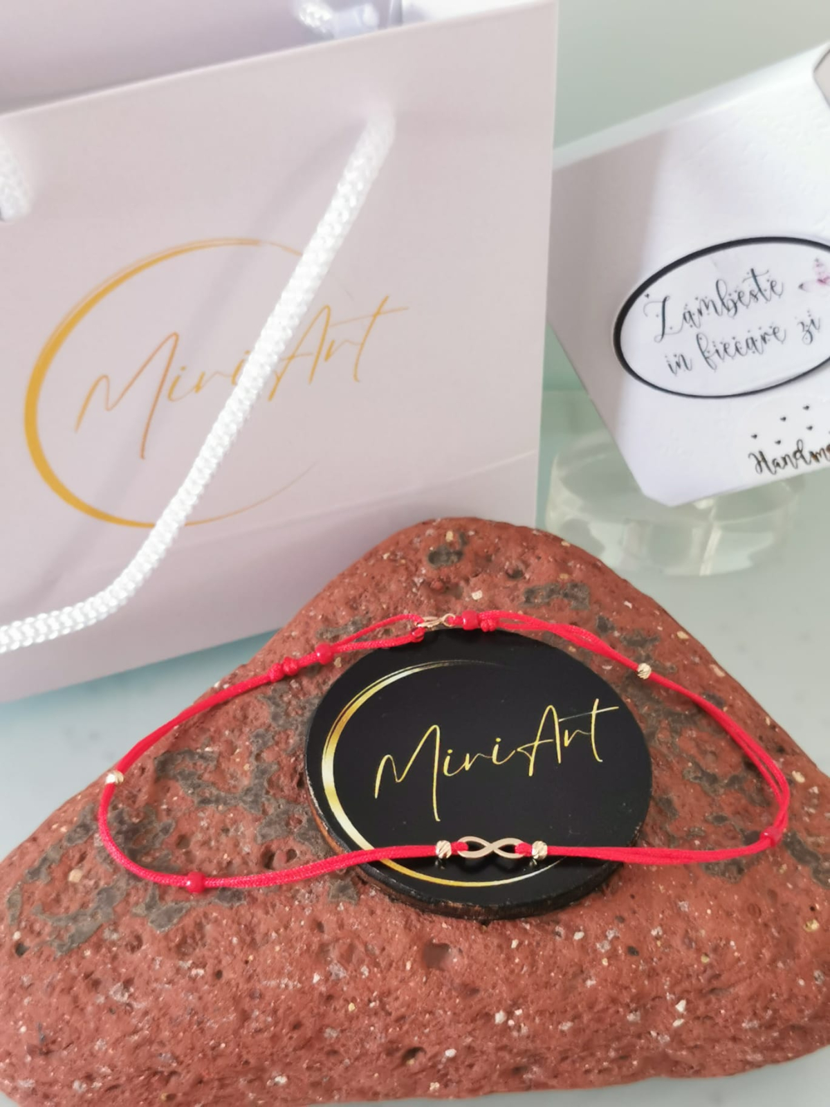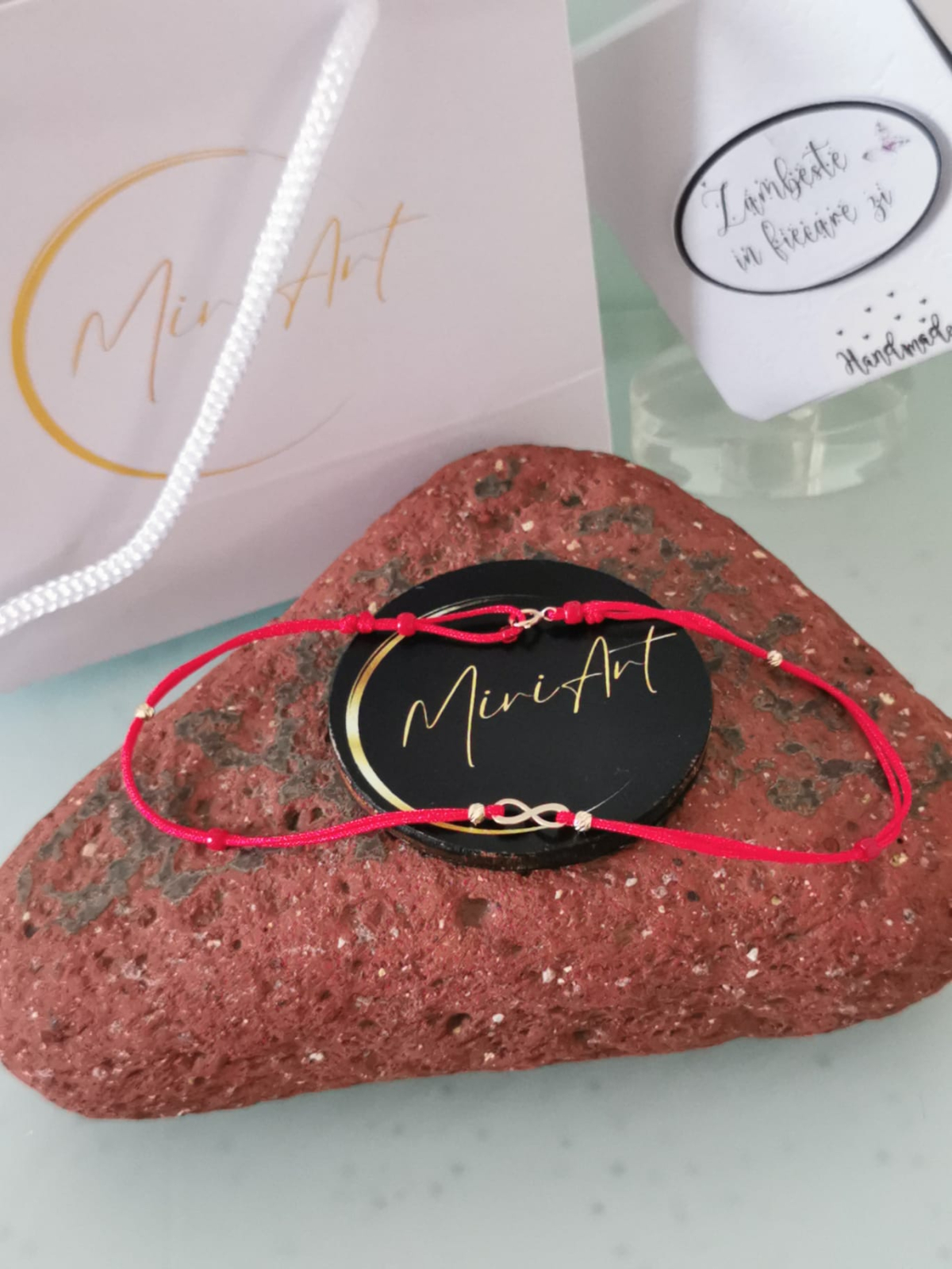 Simbolul infinitului transmite continuitate, echilibru și legături care nu se sfârșesc, iar accentele de aur adaugă rafinament și prețiozitate.