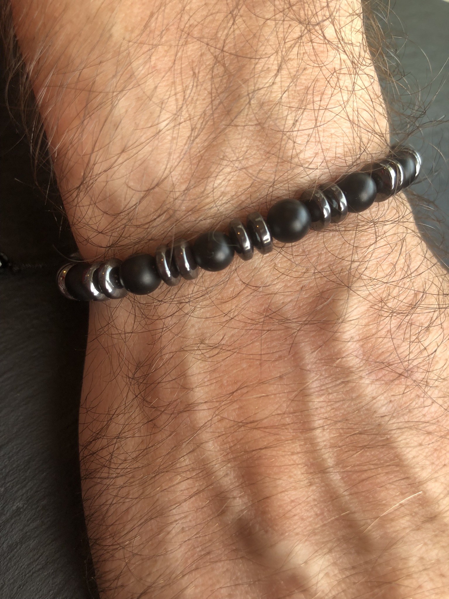 Brățara Contrastul Perfect - combinația dintre Onixul mat de 6mm, alături de accentele de Hematit, construiește o brățară cu impact vizual discret, dar ferm.