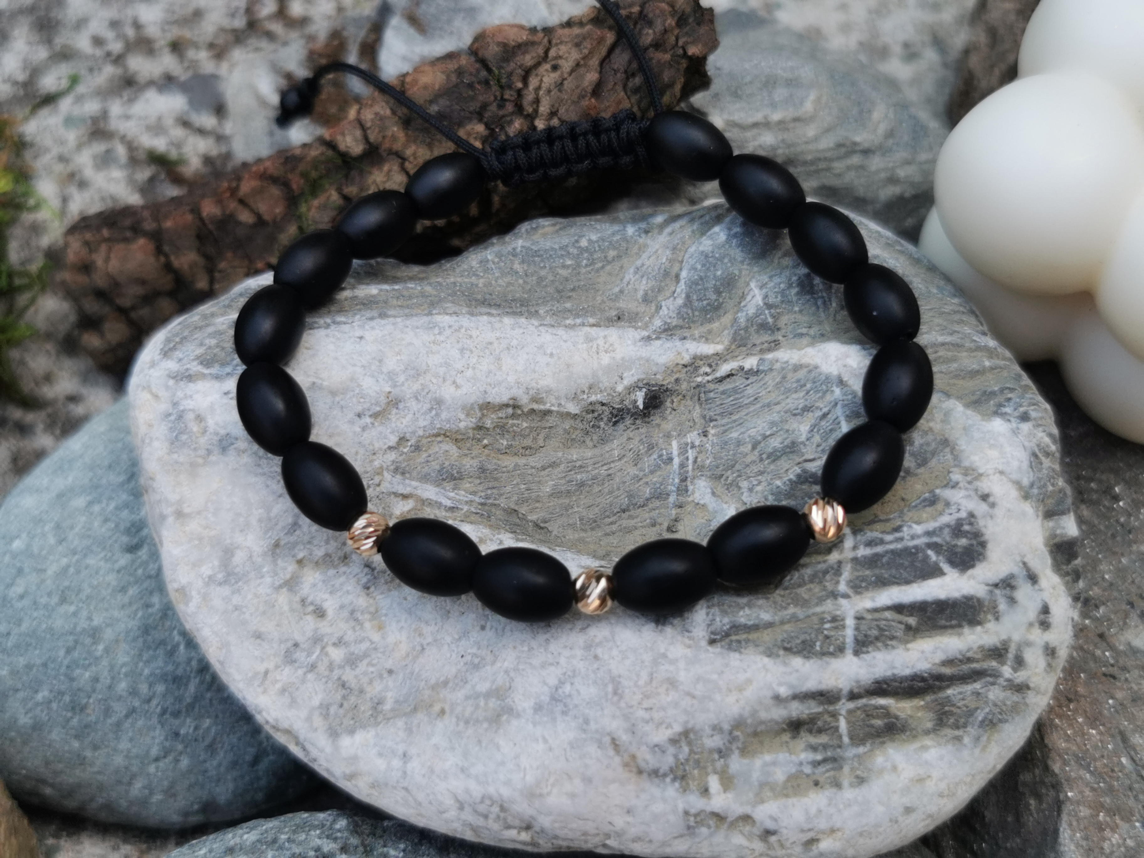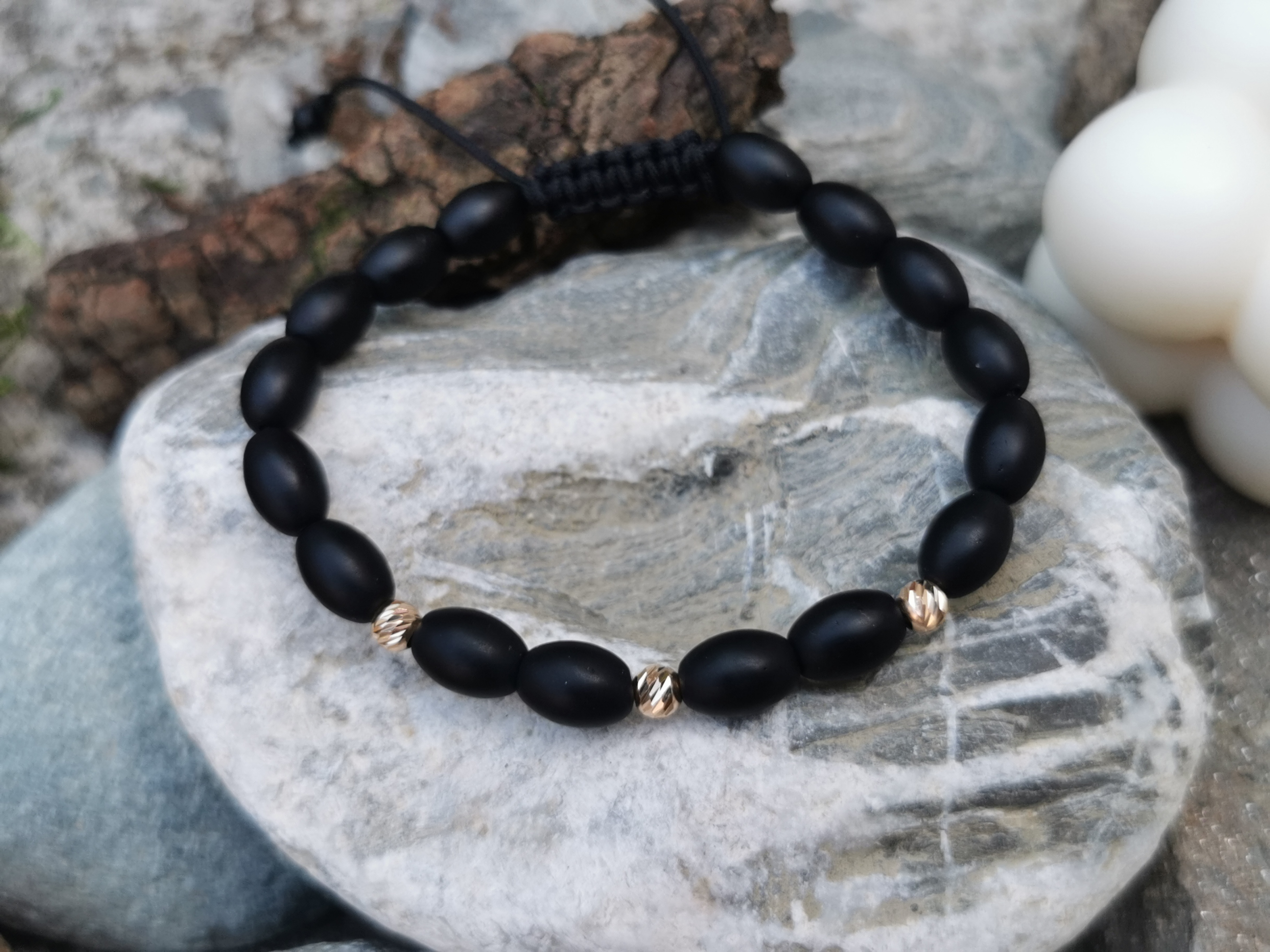Brățara Putere și Prosperitate realizată din Onix – piatra protecției, a încrederii și a echilibrului interior – această brățară susține claritatea mentală și stăpânirea de sine în orice context.
