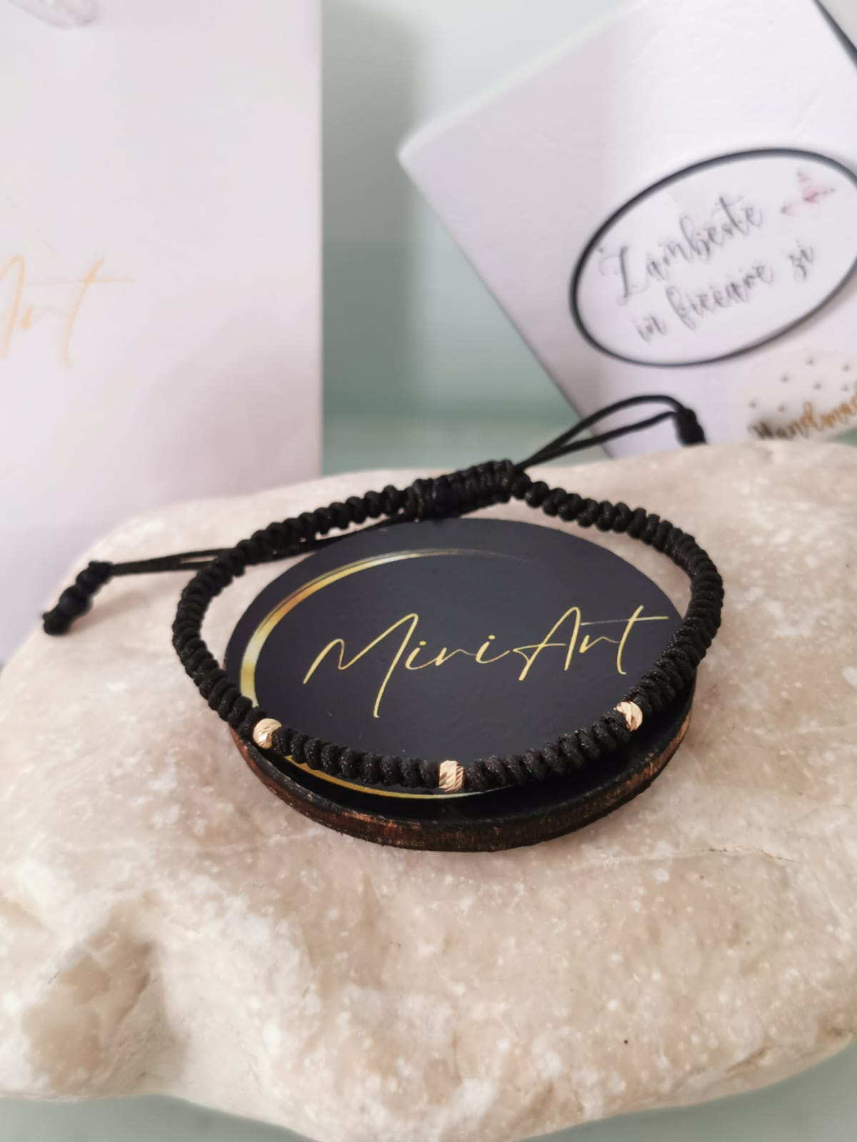 Brățară handmade împletită cu 3 sfere de 3mm din aur 14k și închidere împletită, reglabilă, ușor de ajustat și potrivită oricărei încheieturi.