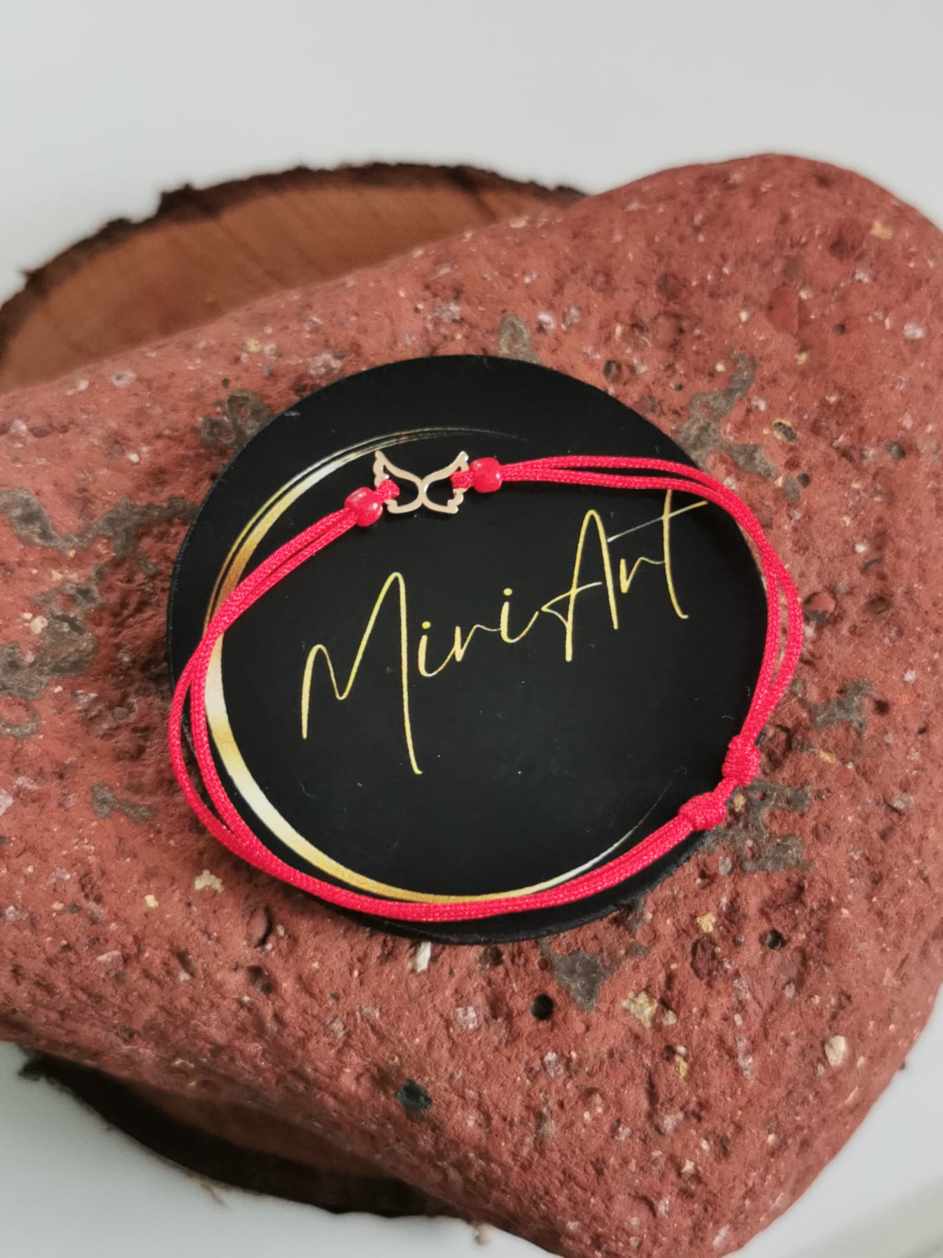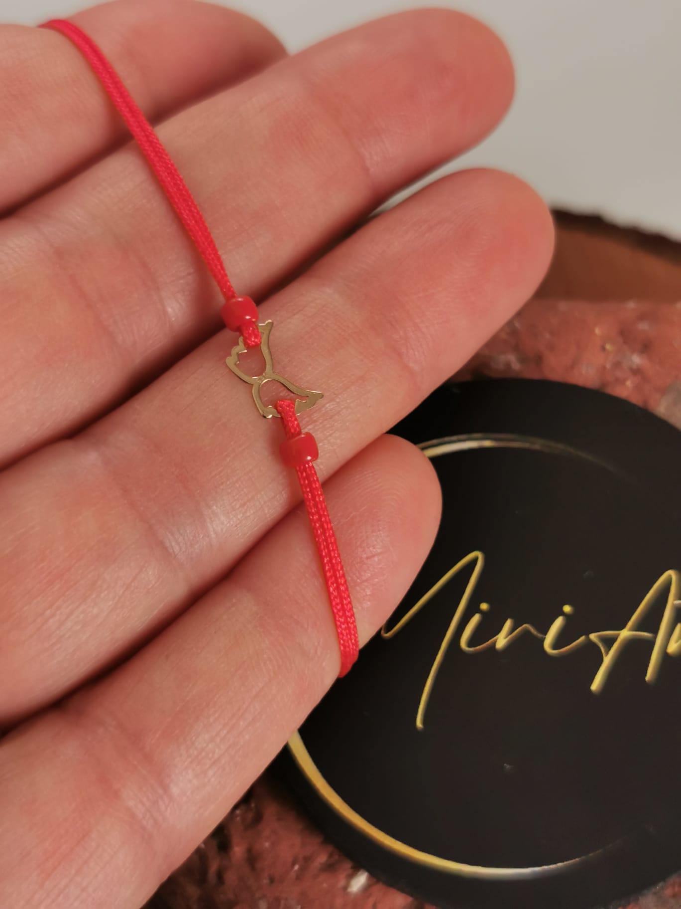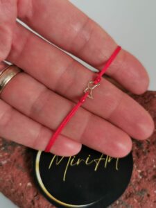Bratara handmade cu pandantiv de aur 14k si inchidere cu noduri.