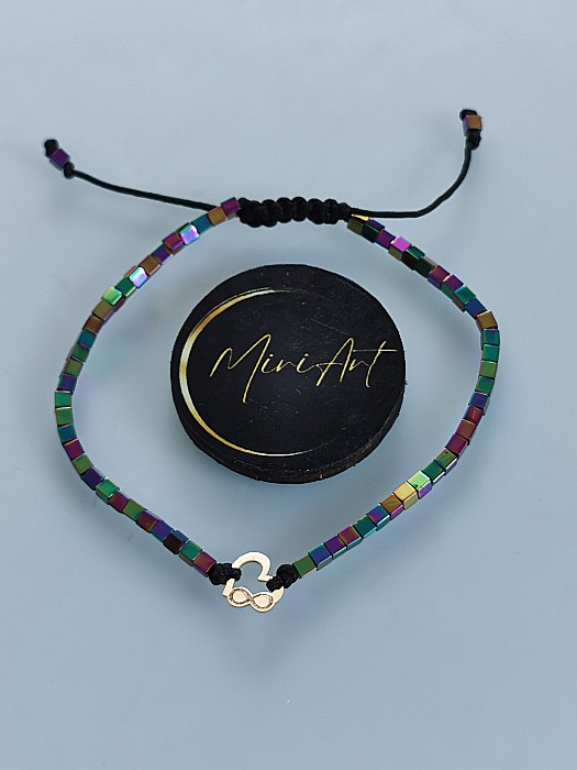 Brățară handmade cu pandantiv inimă cu infinit din aur 14k, pietre semiprețioase, montate pe un șnur rezistent, cu închidere reglabilă cu noduri, ușor de ajustat și se potrivește oricărei încheieturi.