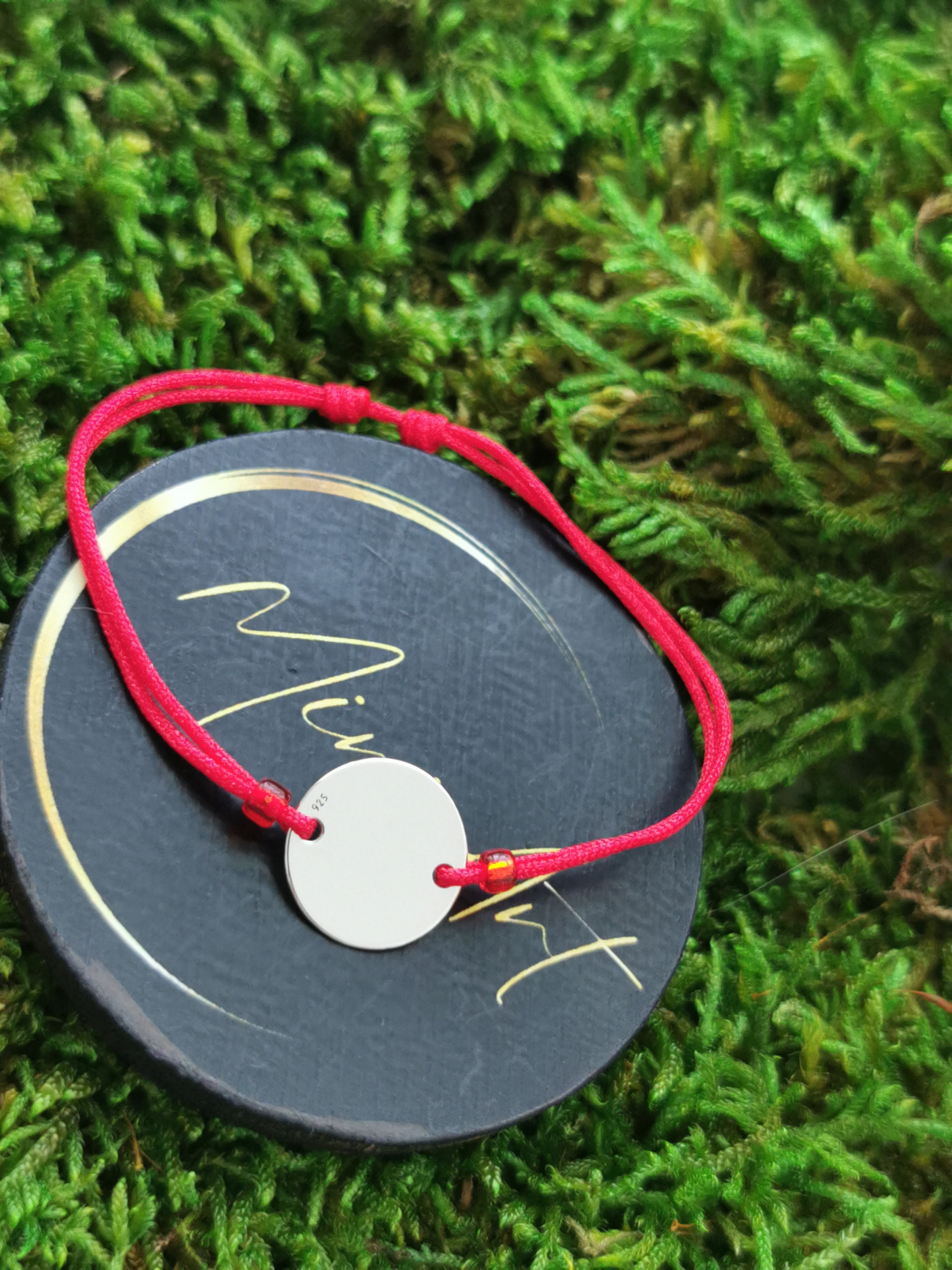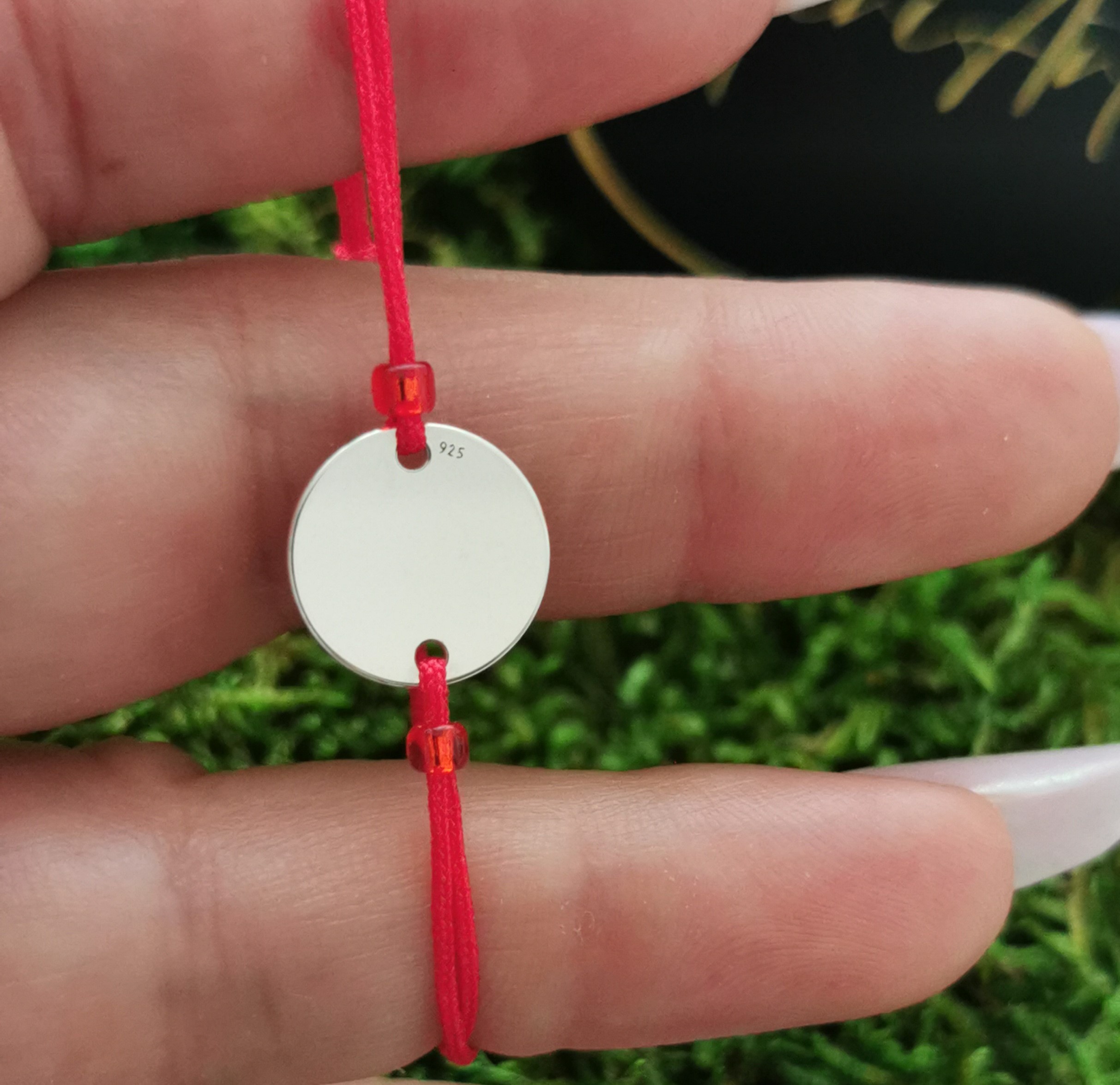 Brățară handmade cu pandantiv bănuț 12mm de argint 925, montat pe un șnur rezistent, cu închidere reglabilă cu noduri, ușor de ajustat și se potrivește oricărei încheieturi.