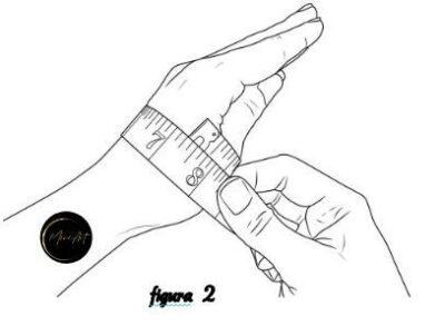 Mărimi standard Mărime Damă : diametru încheietură aproximativ 14 cm–16 cm, diametru maxim brățară deschisă 23 cm Mărime Bărbat : diametru încheietură aproximativ 16 cm–19 cm, diametru maxim brățară deschisă 24-26 cm Pentru coliere măsuraţi conform figurii 4.