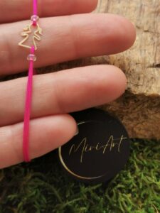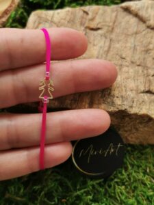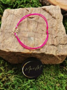Bratara handmade cu pandantiv de aur 14k si inchidere cu noduri.