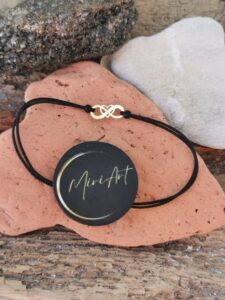 Bratara handmade cu pandantiv de aur 14k si inchidere cu noduri.