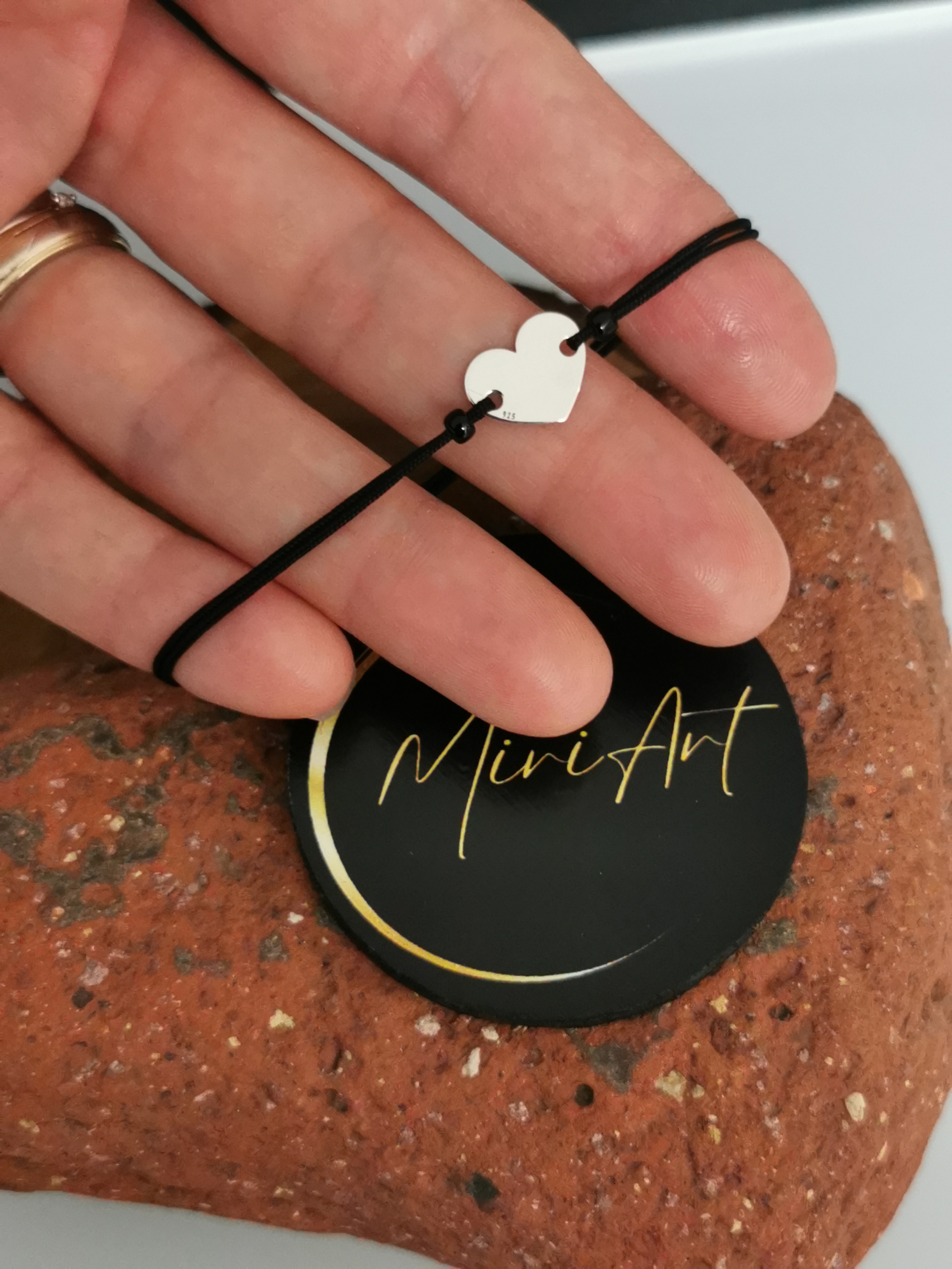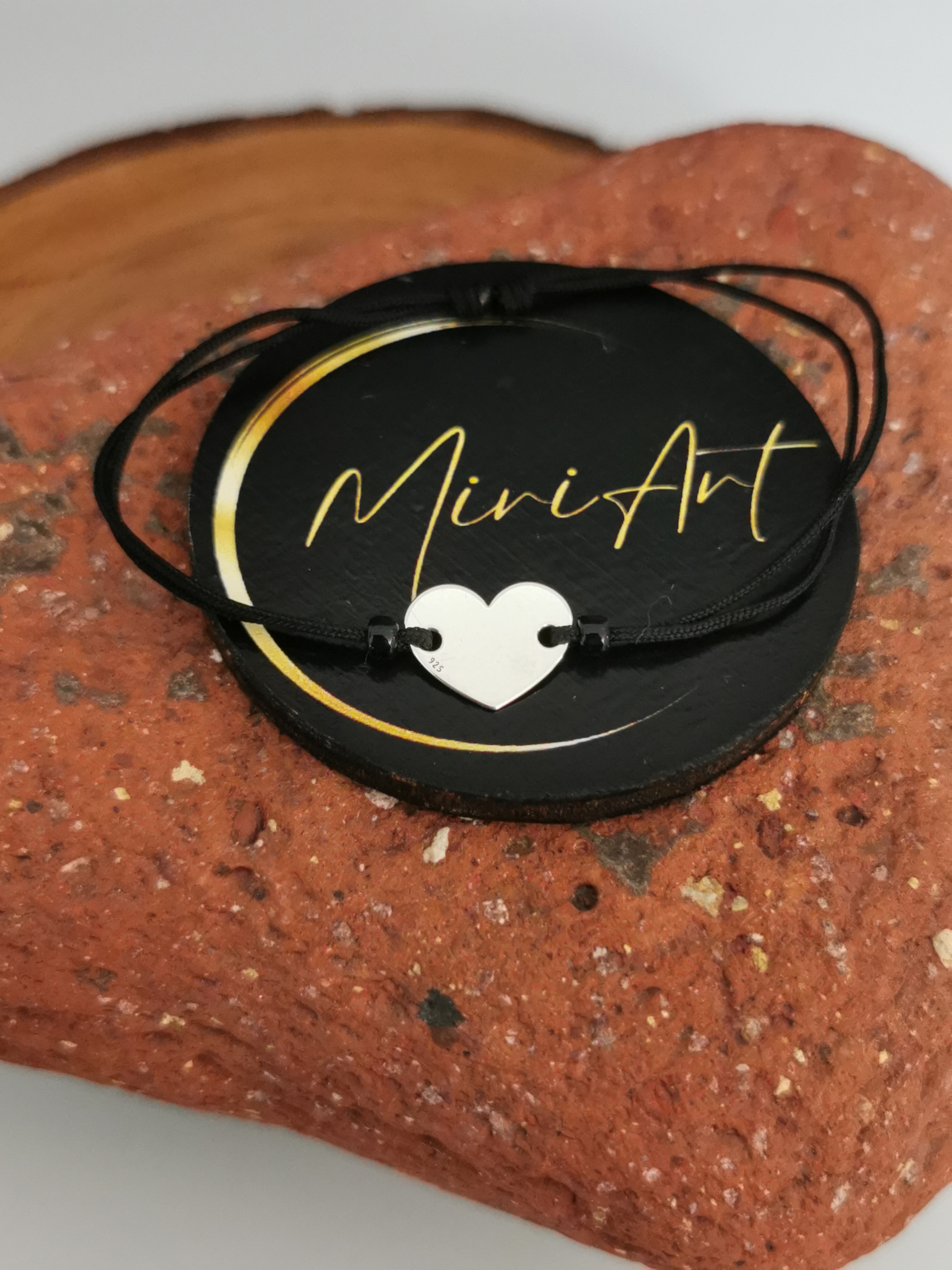 Brățară handmade cu pandantiv inimă plină de argint 925, montat pe un șnur rezistent, cu închidere reglabilă cu noduri, ușor de ajustat și se potrivește oricărei încheieturi.