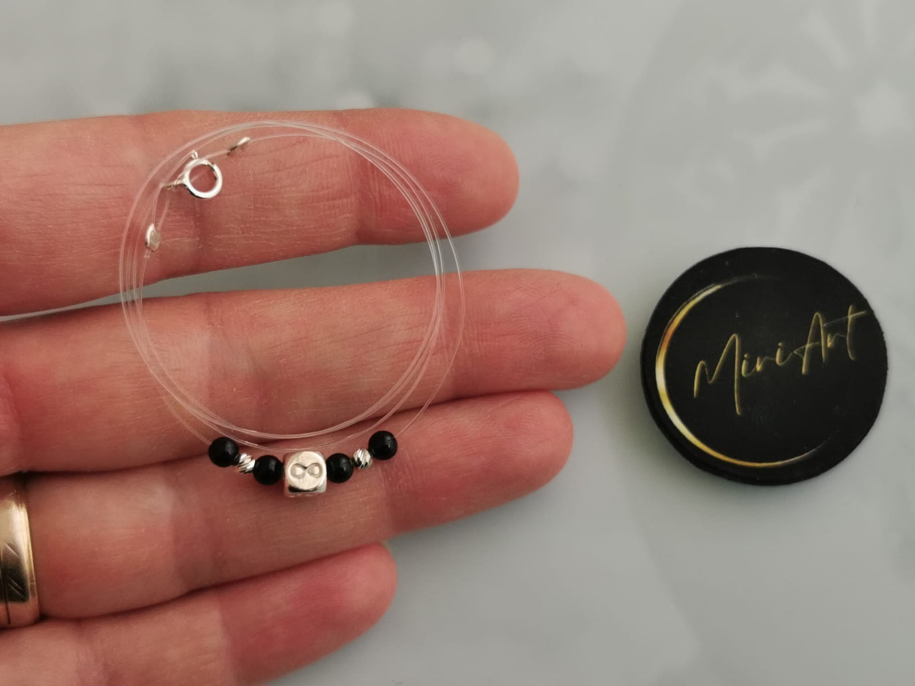 Realizat pe fir transparent, colierul pune în valoare pietrele semiprețioase de Onix de 3mm – cunoscute pentru puterea lor protectoare și capacitatea de a aduce claritate și stabilitate interioară.