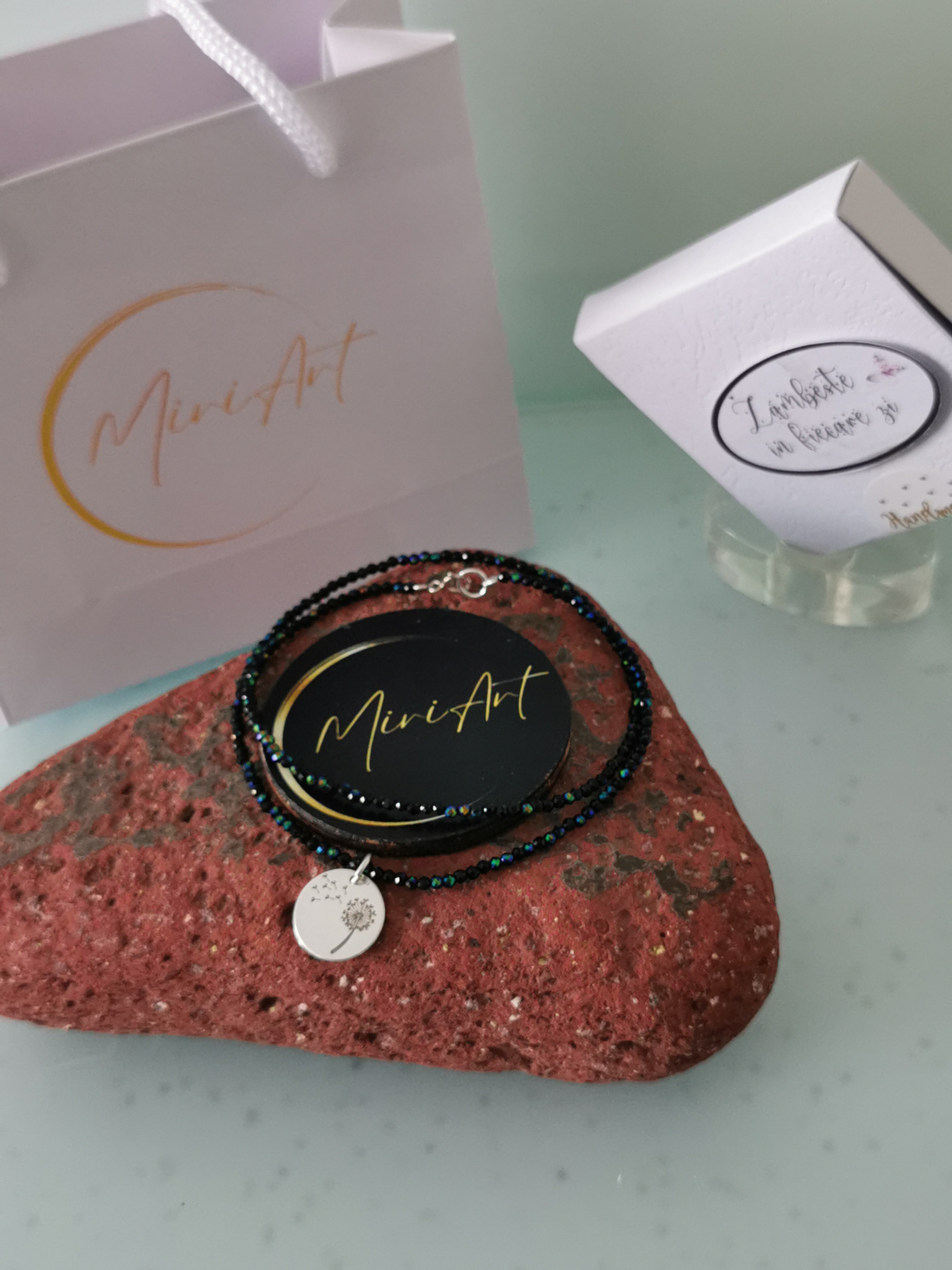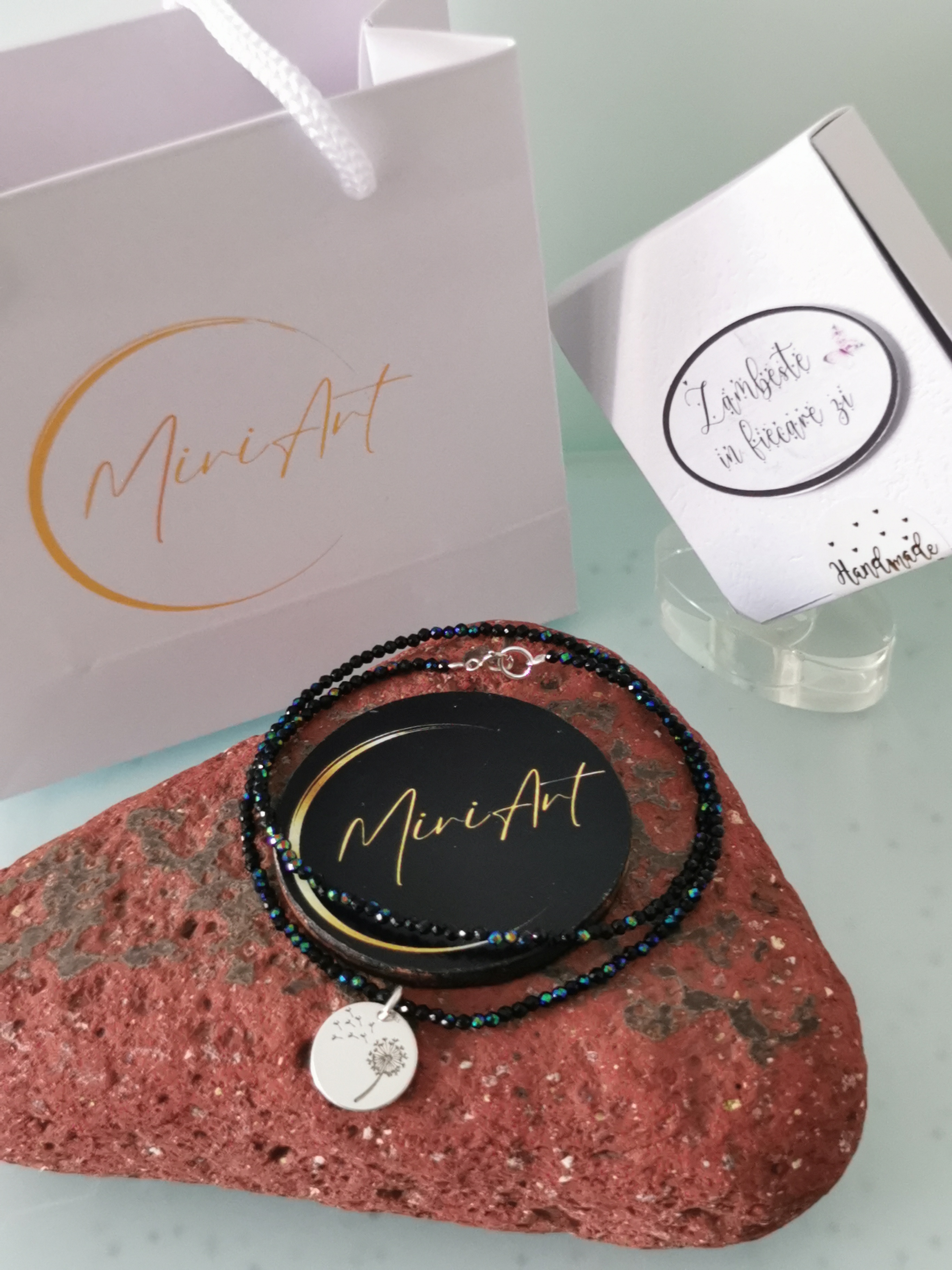 Colierul este realizat manual în atelierul nostru, însoțit de certificat de autenticitate și oferit într-un ambalaj elegant cadou, din partea noastră.