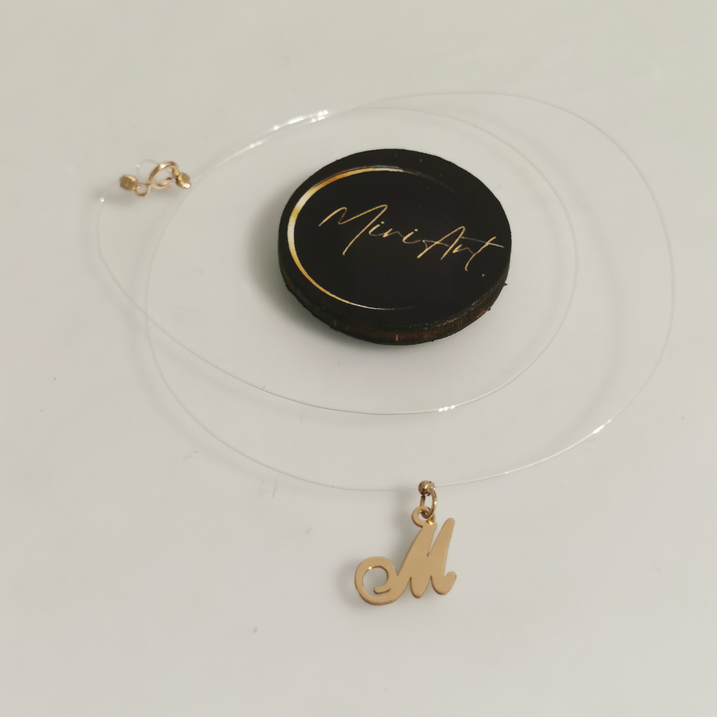Firul transparent adaugă finețe, iar elementele din aur – pandantivul și închiderea – aduc un plus de prețiozitate.