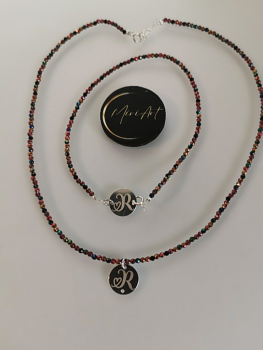 Set bijuterii argint 925 – eleganță discretă cu spinel natural, detalii personalizate și inițială gravată, pentru o prezență rafinată și simbolică