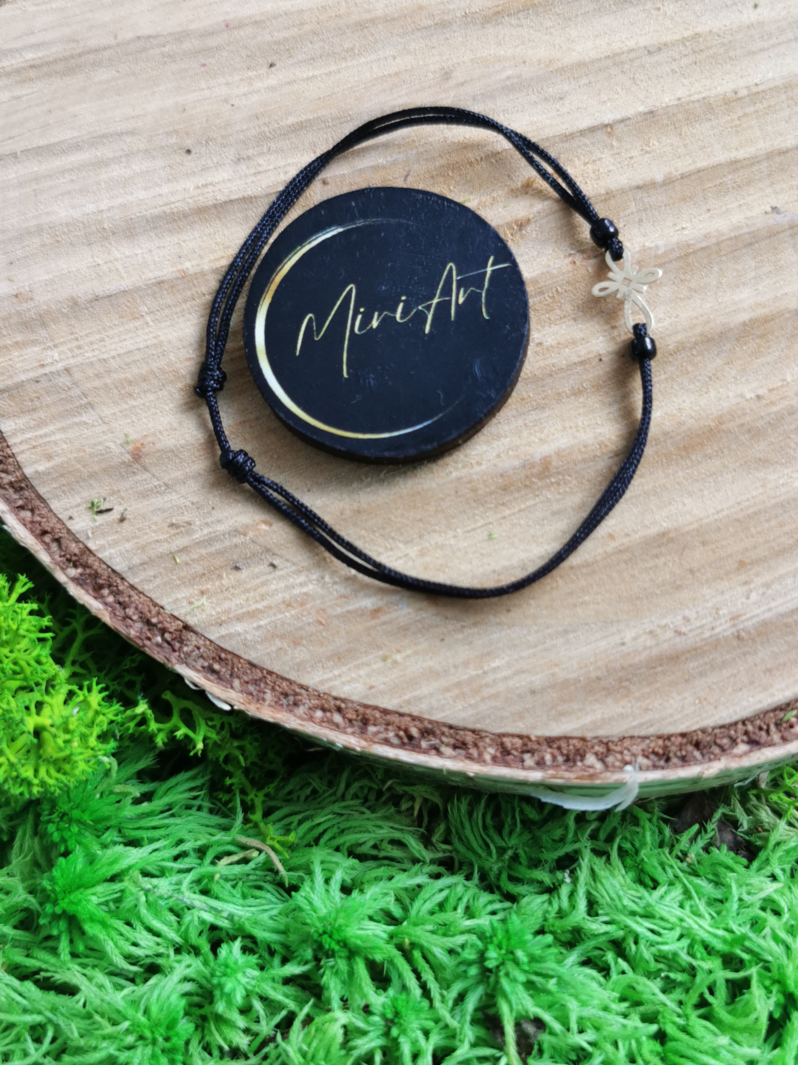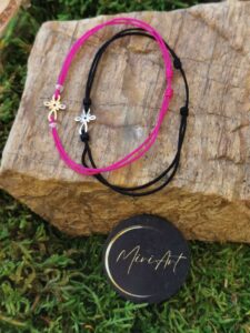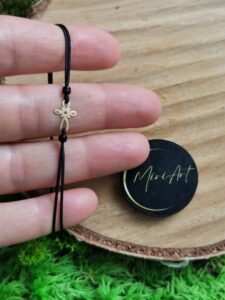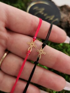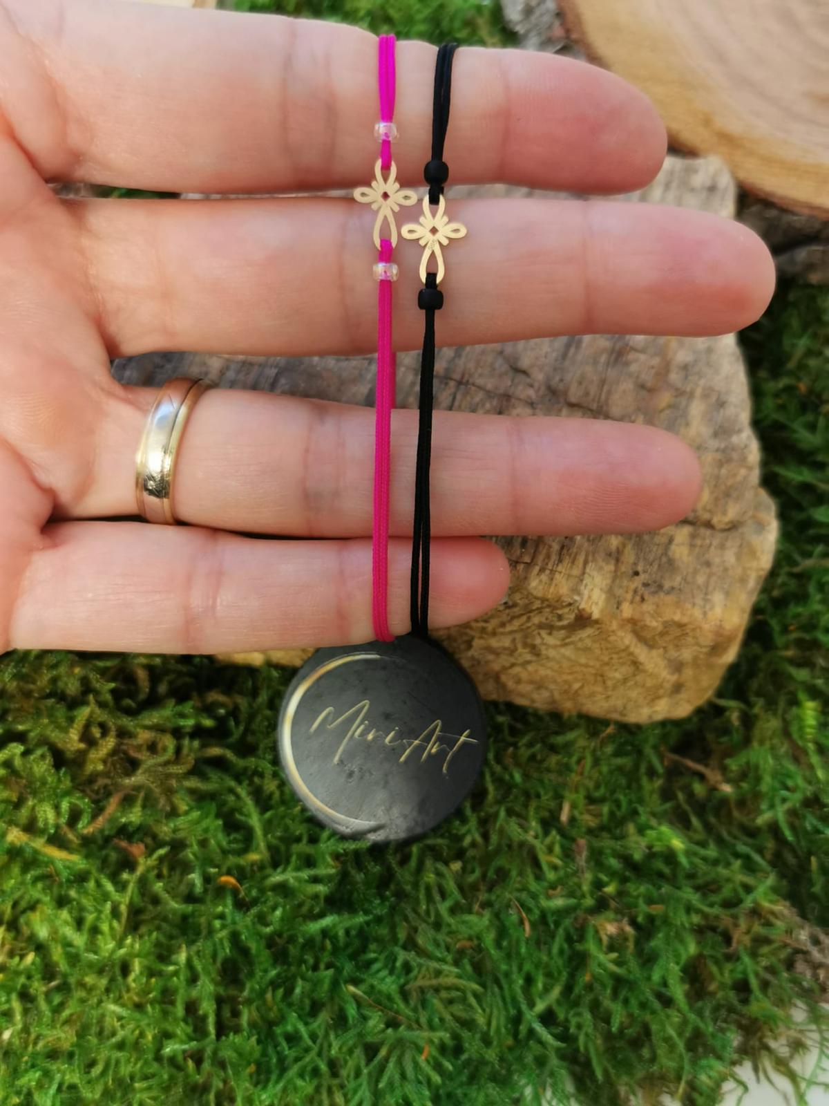 Bratara handmade cu pandantiv de aur 14k si inchidere cu noduri.