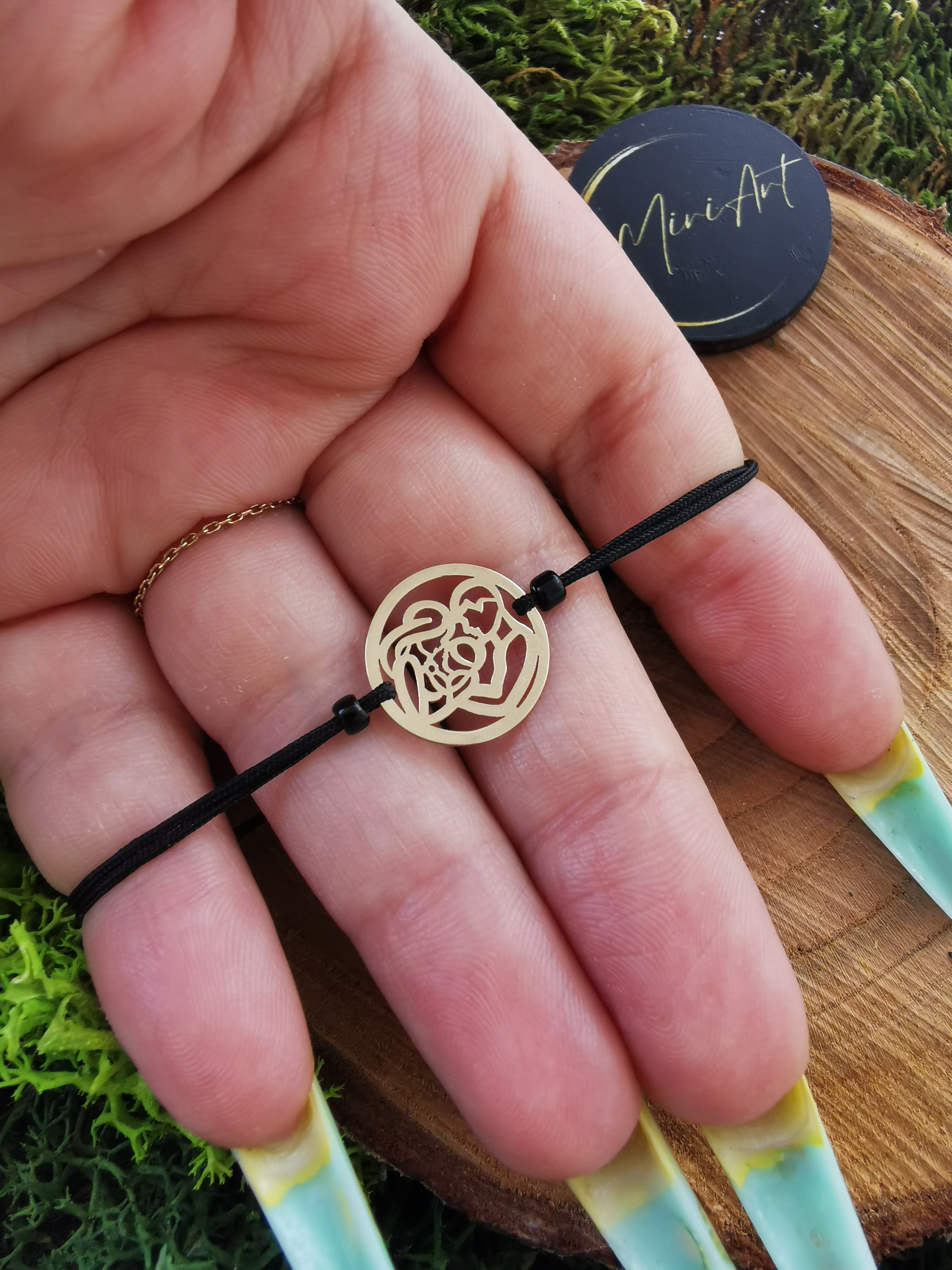 Brățară handmade cu pandantiv familie din aur 14k, montat pe un șnur rezistent, cu închidere reglabilă cu noduri, ușor de ajustat și se potrivește oricărei încheieturi.