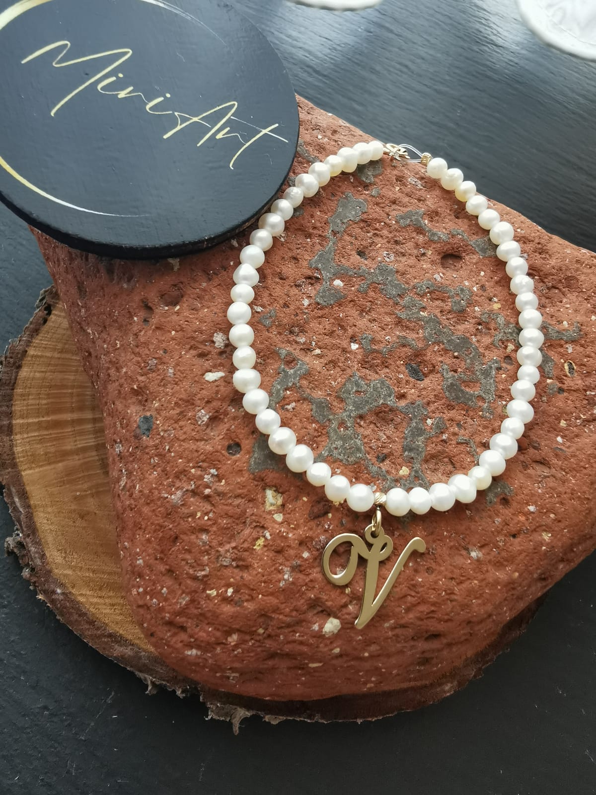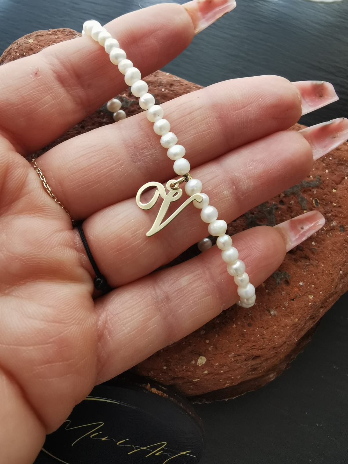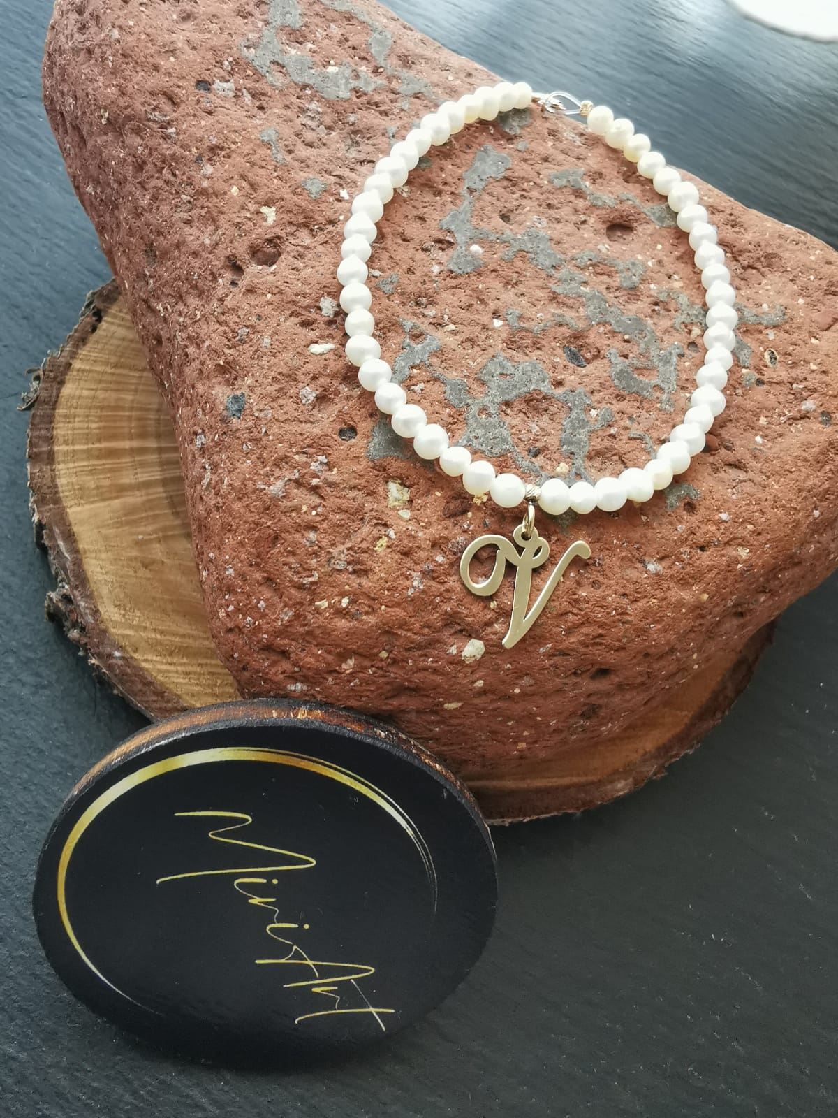 Designul discret este accentuat de detalii din aur 14K – atât în închidere, cât și în pandantivul sub formă de inițială, care adaugă un plus de intimitate și unicitate.