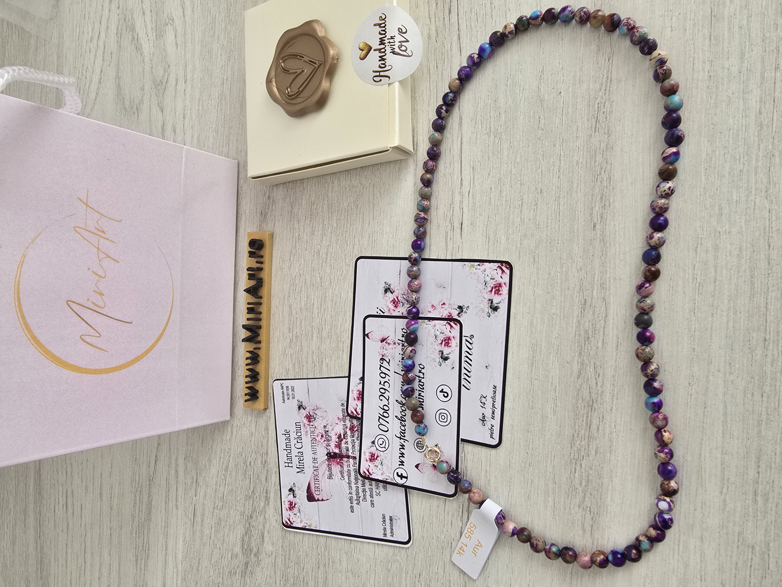 Fiecare piatră are nuanțe unice – de la mov profund la albastru calm și alb luminos – exact ca emoțiile pe care le trăim zi de zi.