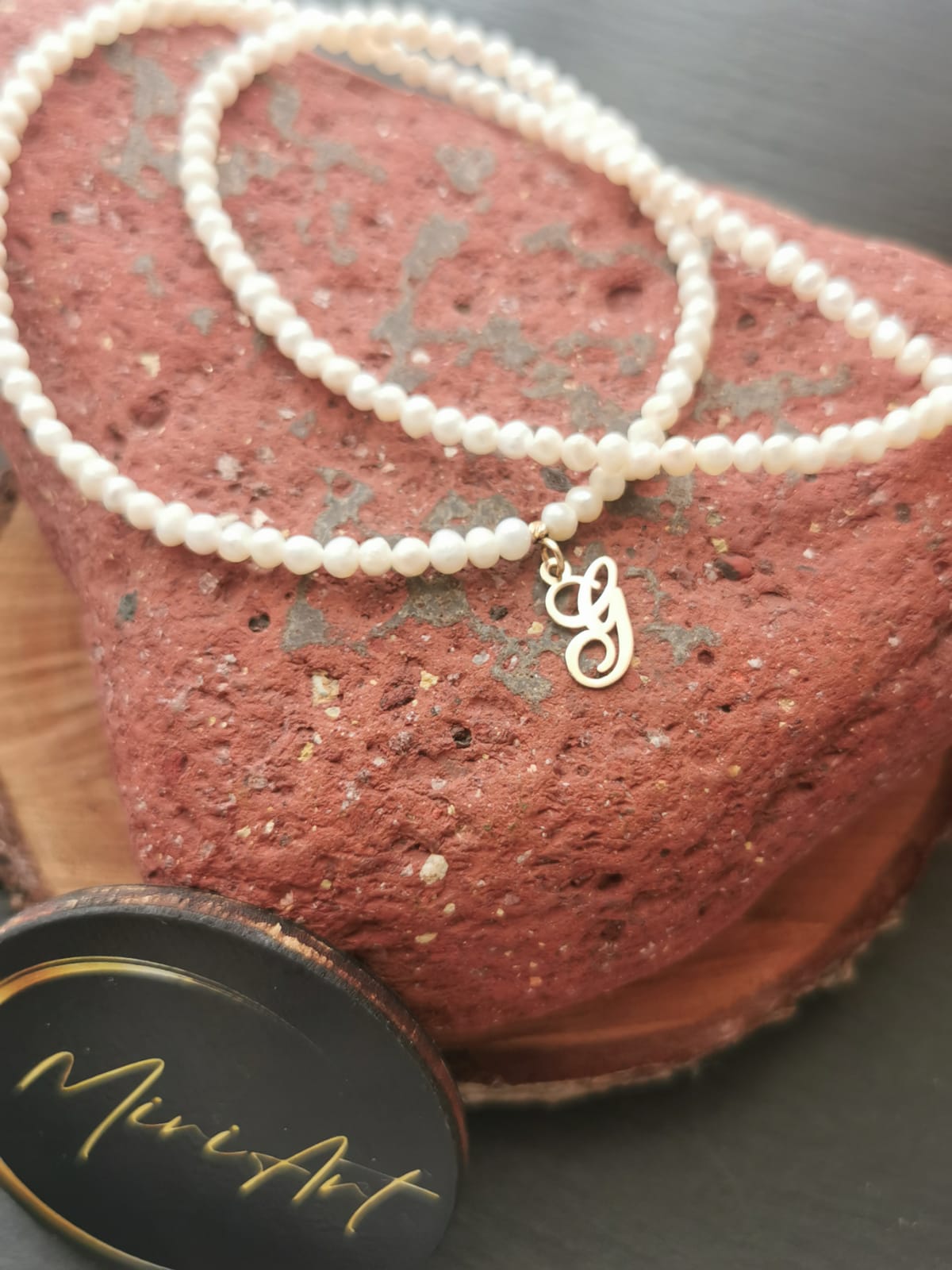 Colierul Strălucire Perlată cu inițiala G este dedicat femeilor care preferă eleganța discretă și detaliile fine, oferind totodată o notă personală purtată aproape de inimă.