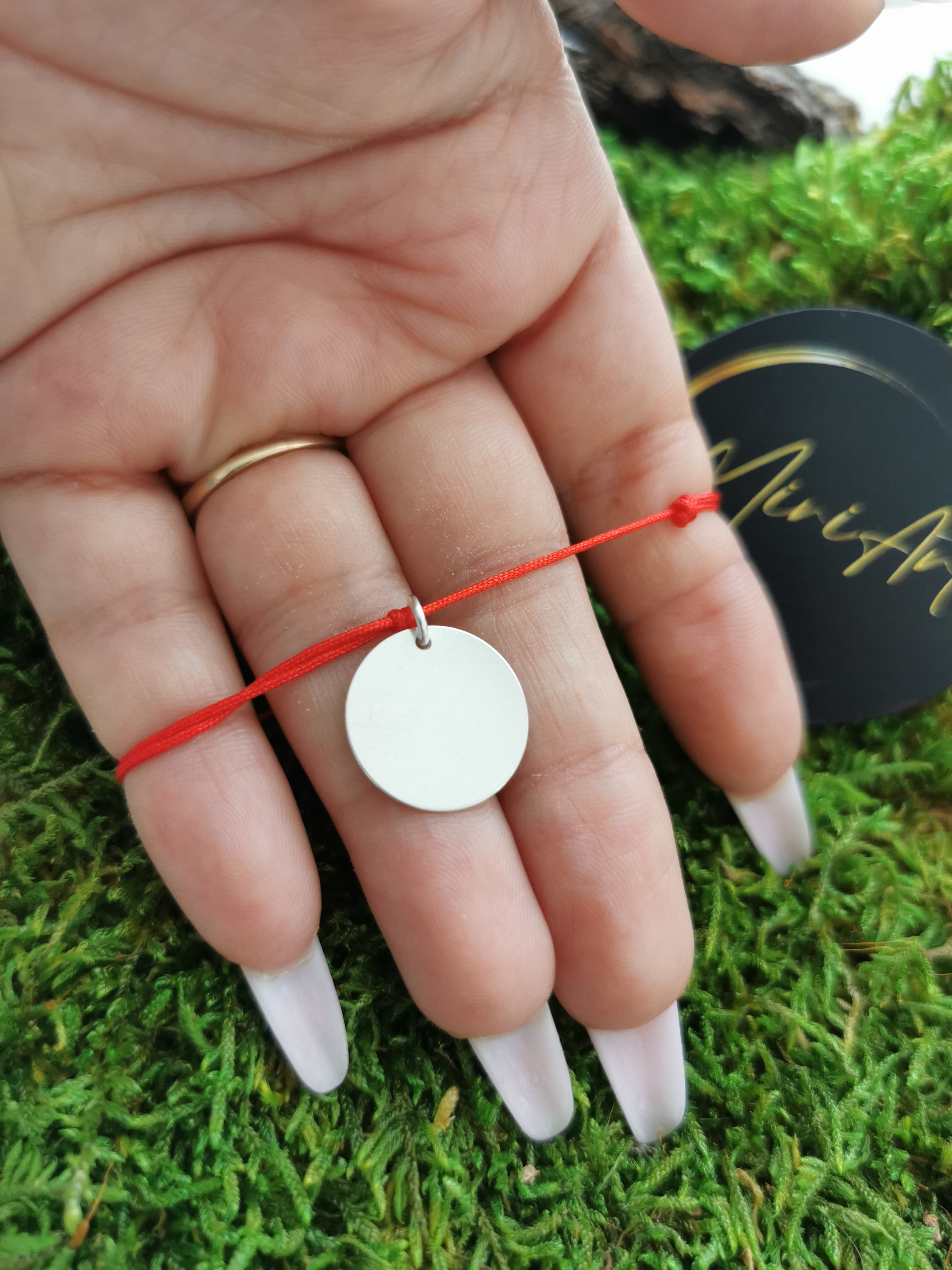 Brățară handmade cu pandantiv bănuț de argint 925 de 16mm, montat pe un șnur rezistent, cu închidere reglabilă cu noduri, ușor de ajustat și se potrivește oricărei încheieturi.