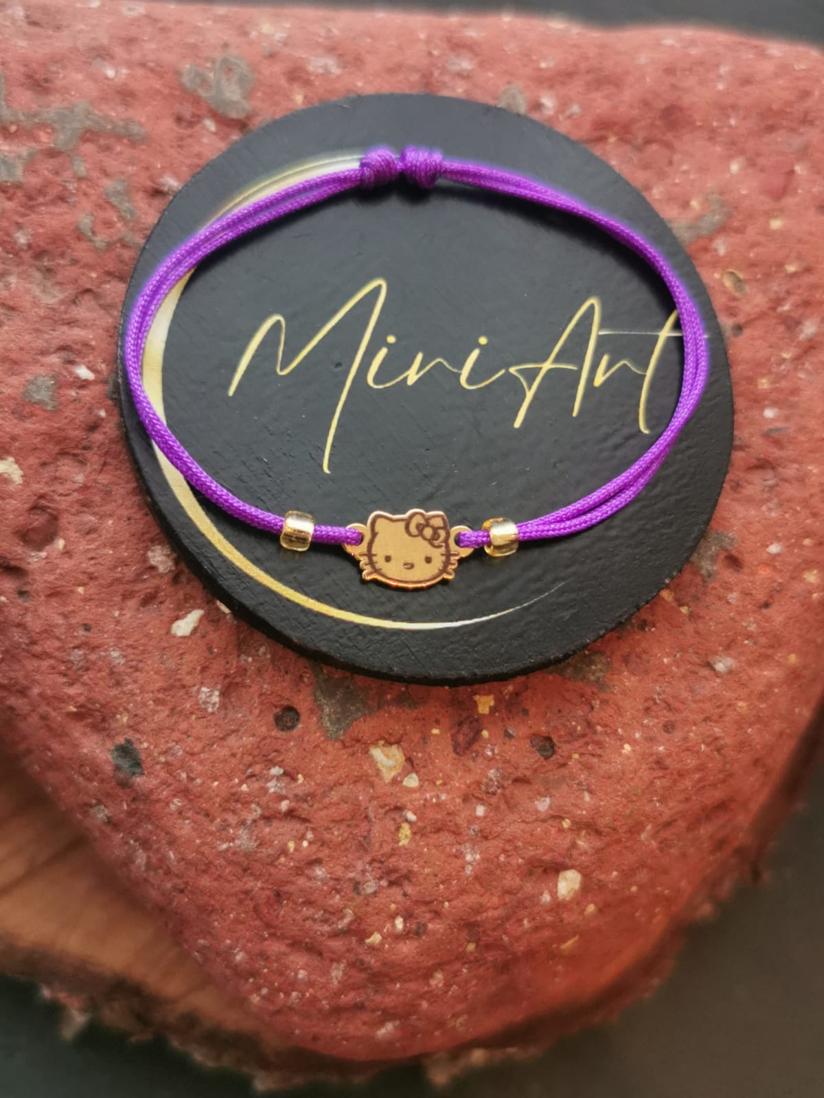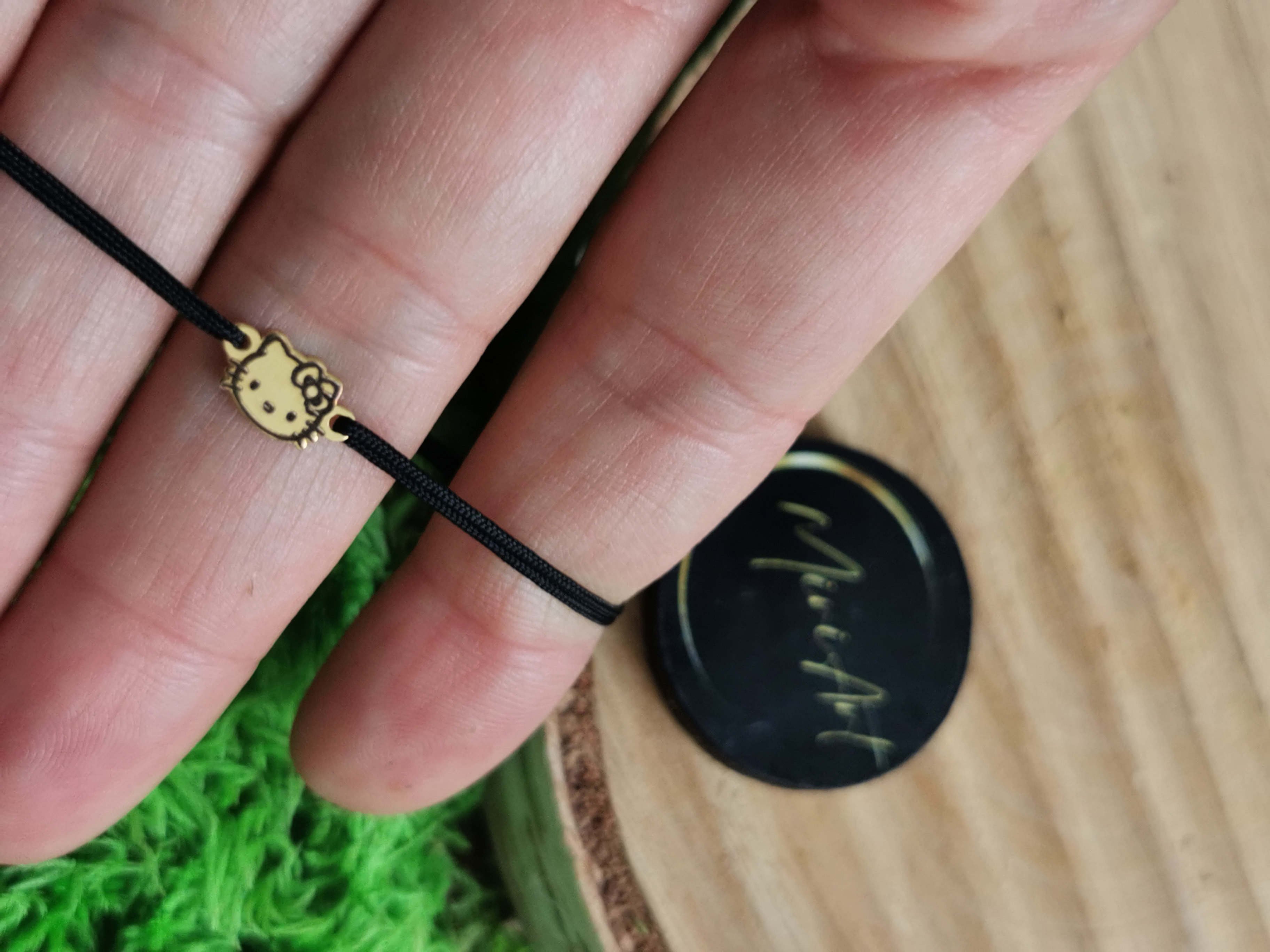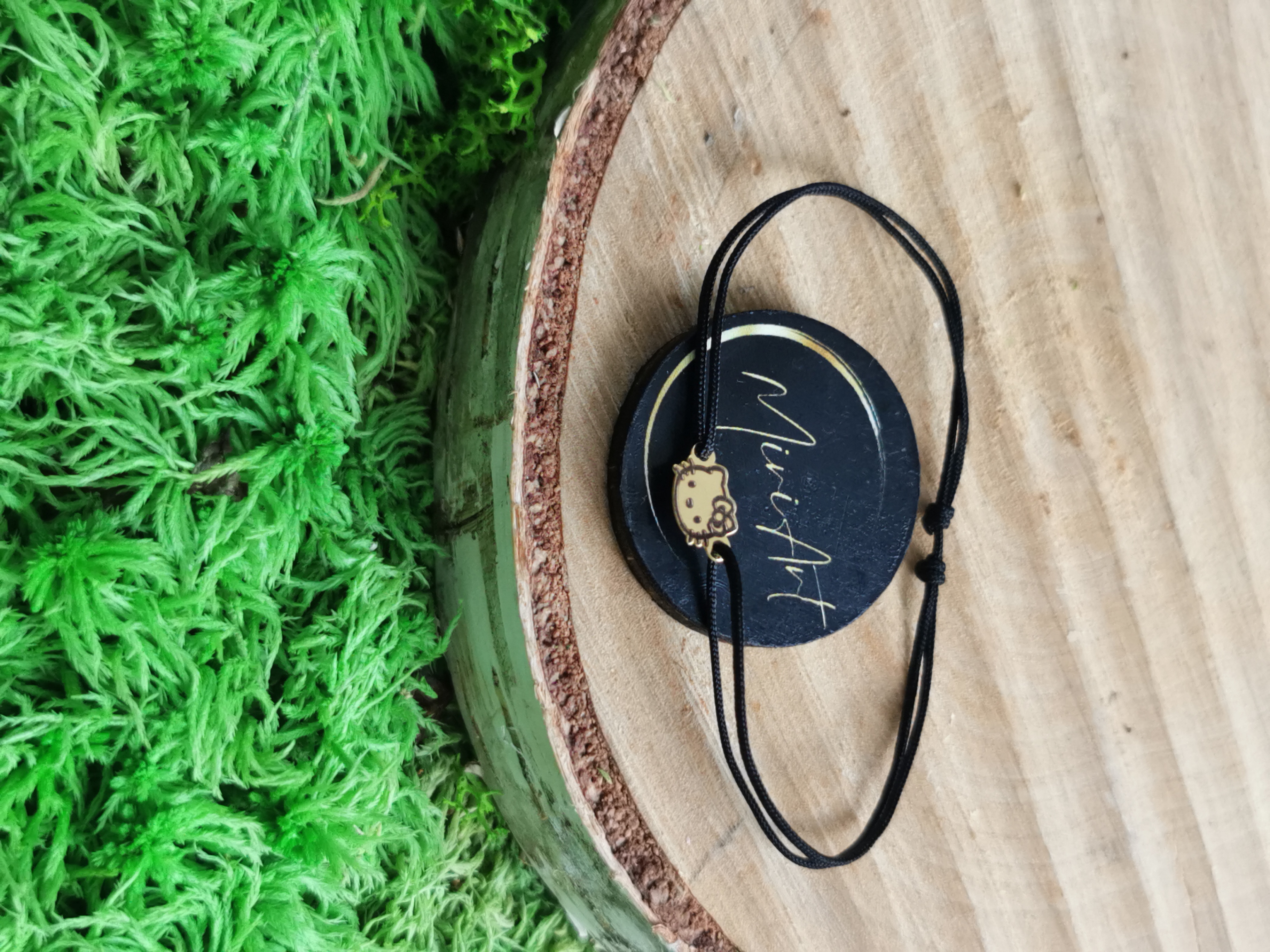 Brățară handmade cu pandantiv Hello Kitty din aur 14k, montat pe un șnur rezistent, cu închidere reglabilă cu noduri, ușor de ajustat și se potrivește oricărei încheieturi.