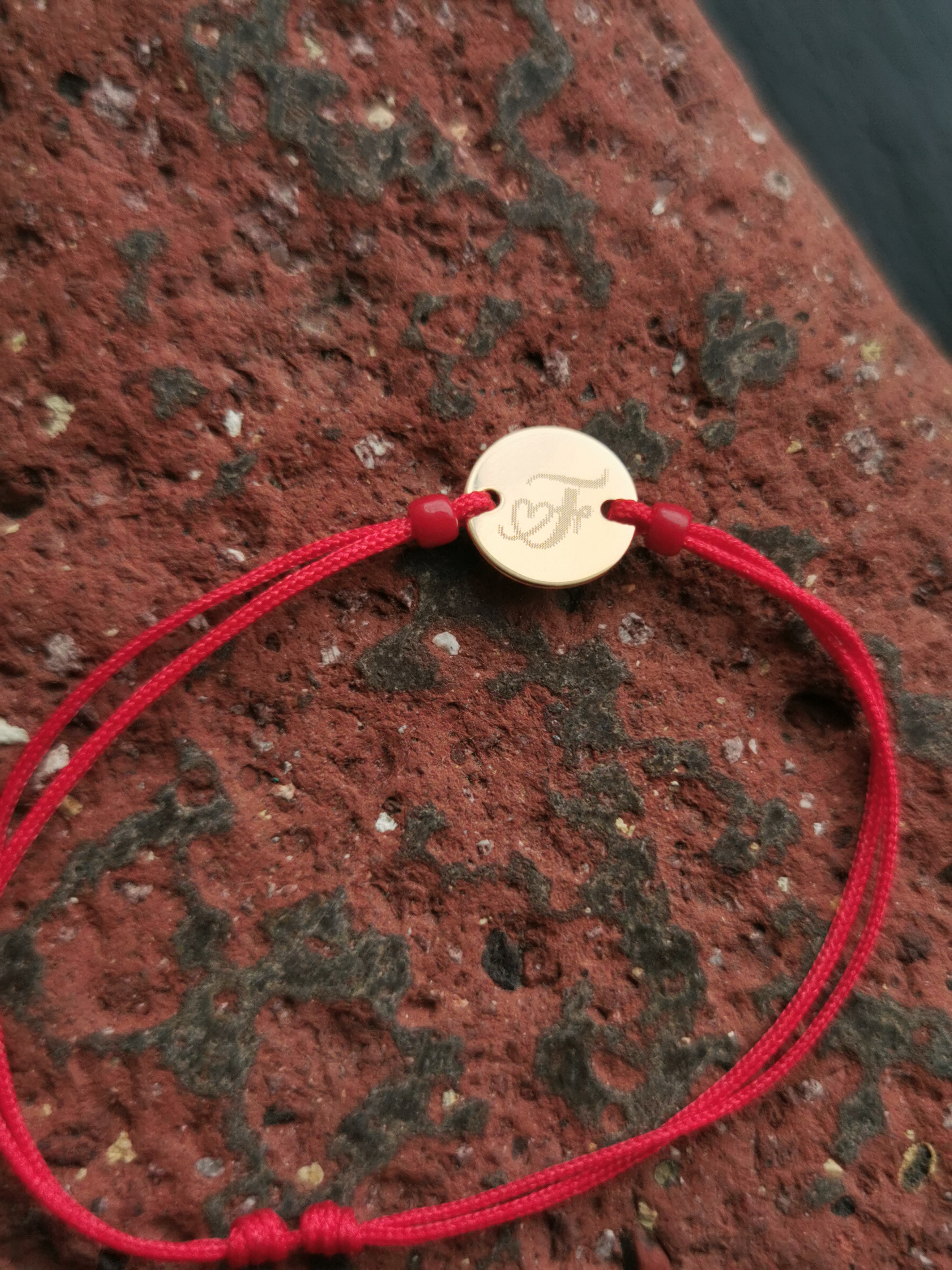 Brățara Inițiala F este accesorizată cu un bănuț de 12 mm din argint925 placat cu aur, gravat cu inițiala „F”, această brățară poate fi personalizată cu orice altă literă, la alegerea purtătorului.