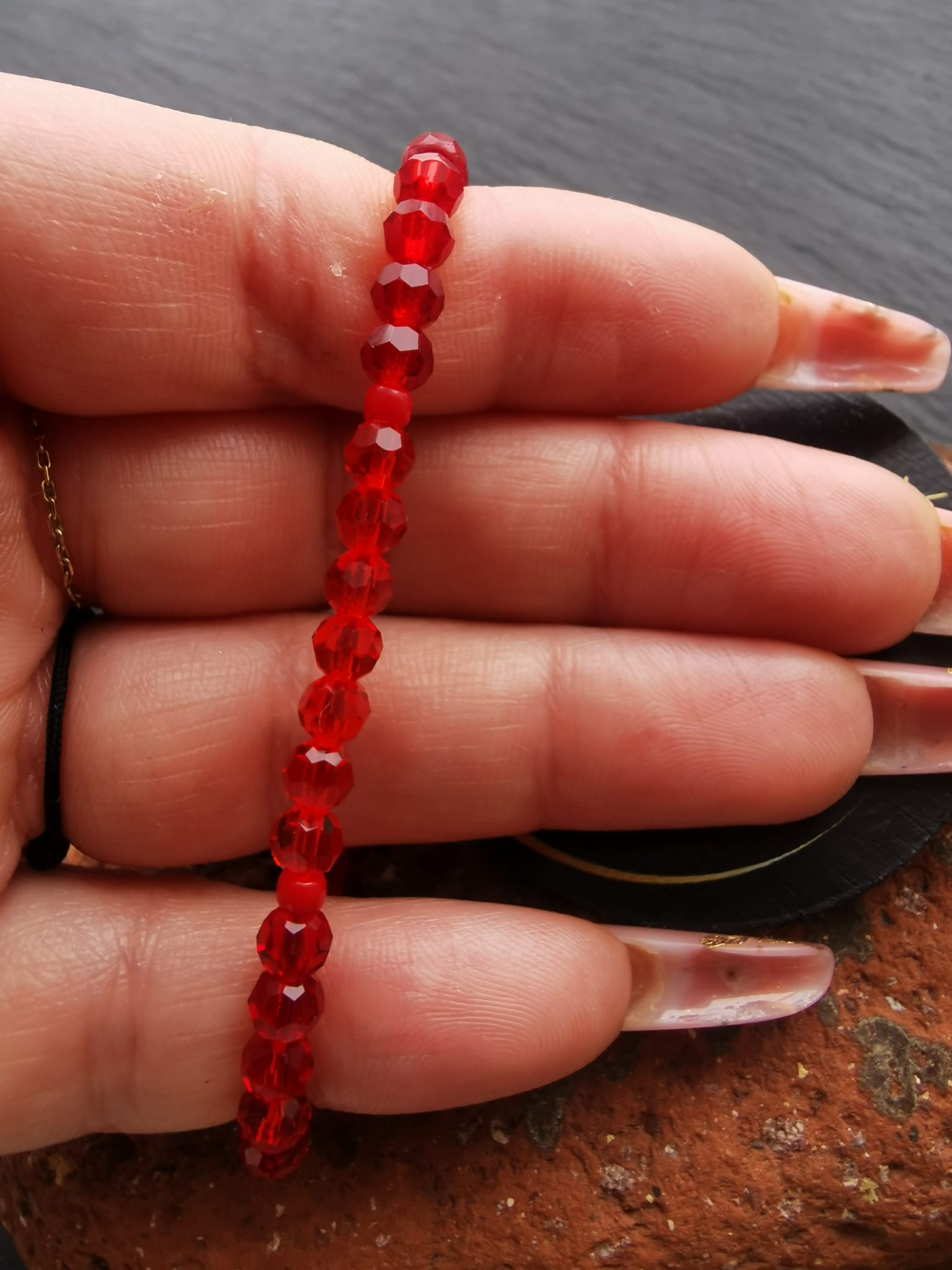 Brățara Strălucire de Primăvară aduce în prim-plan energia și căldura unui nou început, prin cristale fațetate de 4mm în nuanțe de roșu intens, echilibrate de accente translucide ce reflectă lumina cu subtilitate.