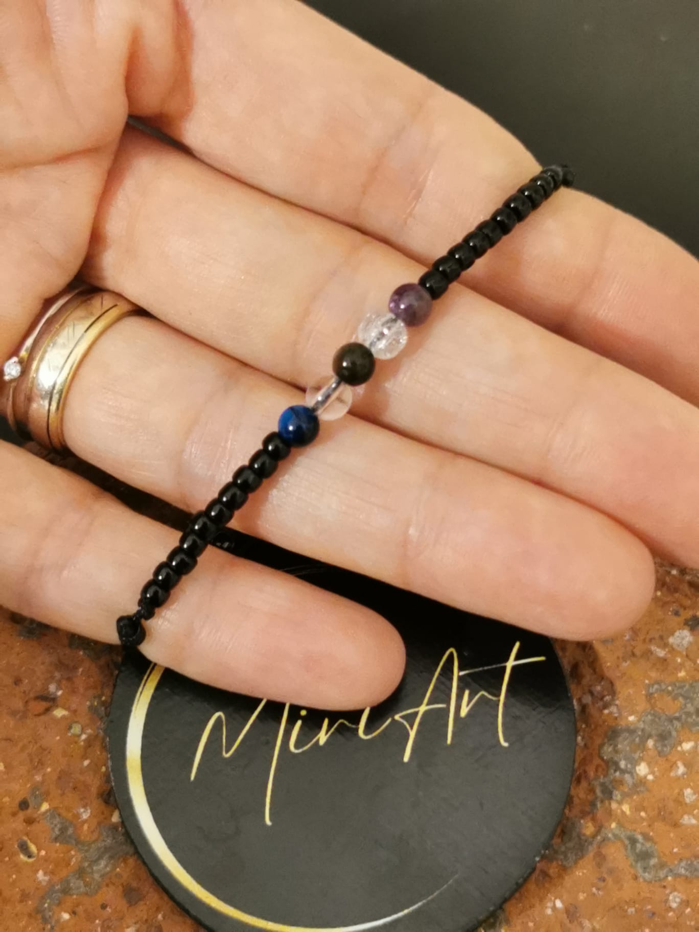 Combină pietre alese pentru protecție, putere personală și purificare mentală, completate de mărgele Toho pentru un plus de strălucire.