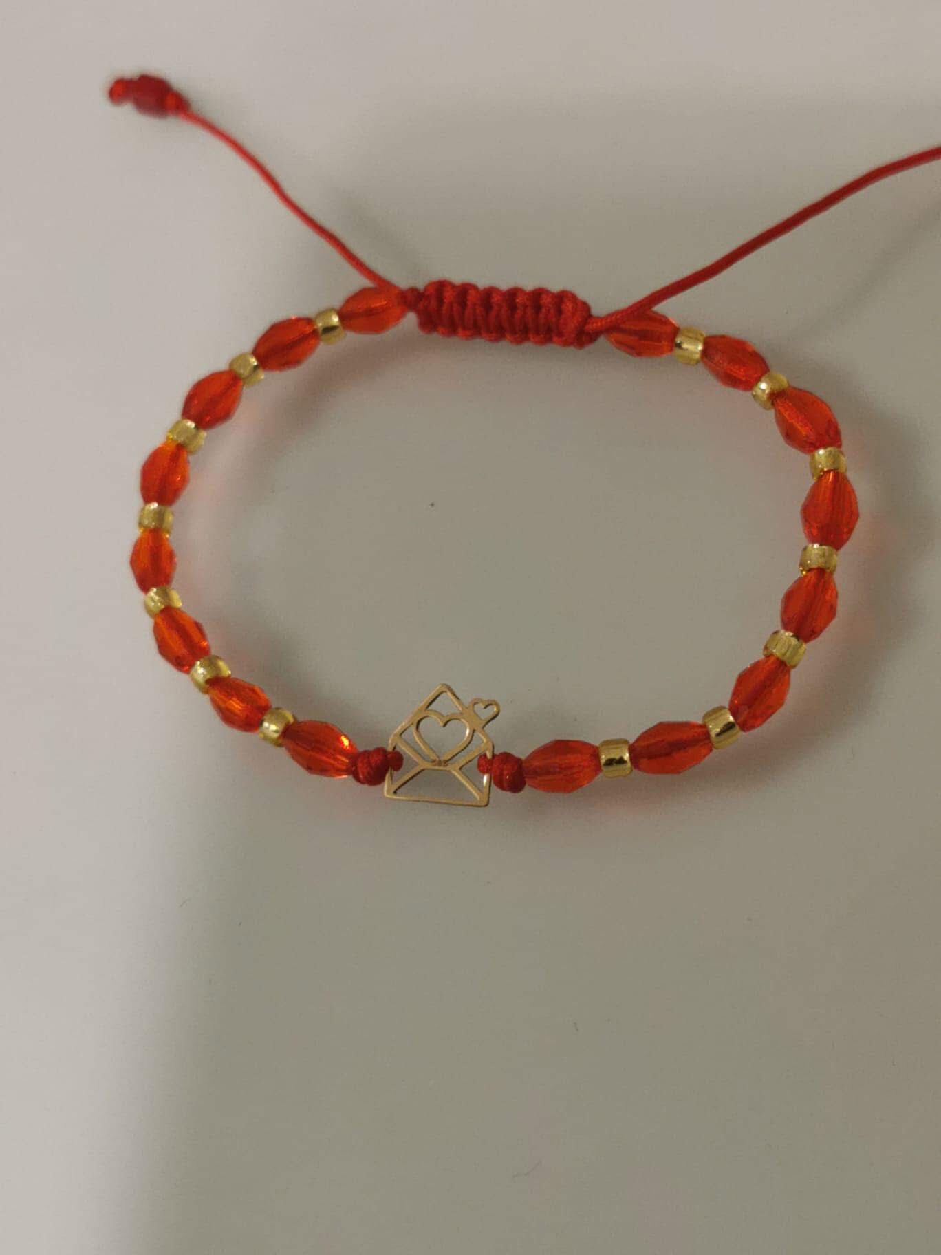 Brățară handmade cu pandantiv plicul dragostei din aur 14k, cristale de sticlă, mărgele Toho și închidere împletită, reglabilă, ușor de ajustat și se potrivește oricărei încheieturi.