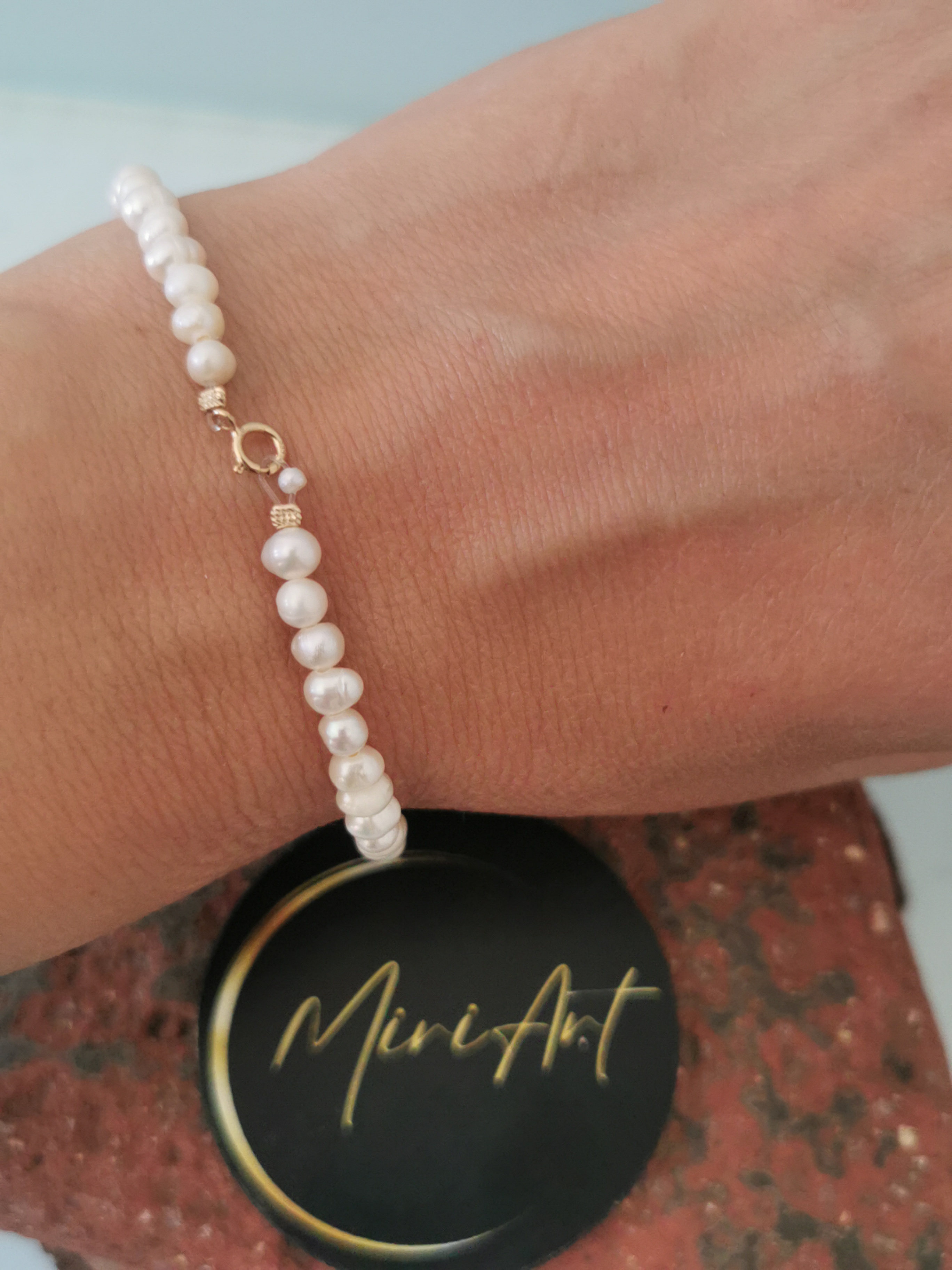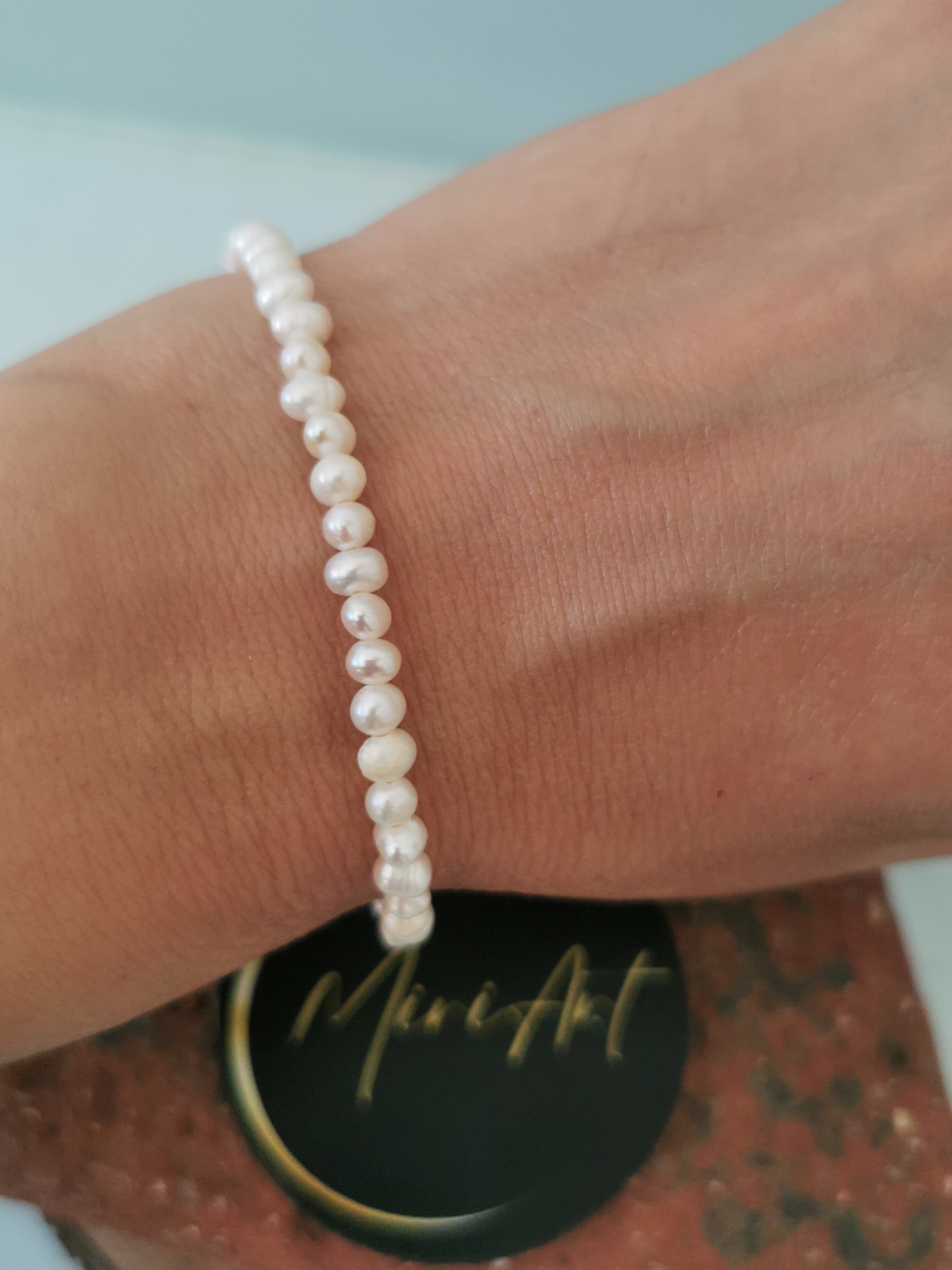 Brățara Strălucire Naturală – Perlele de cultură de 3-4mm, montate pe fir transparent, oferă impresia unei bijuterii ușoare, aproape invizibile, dar cu o prezență caldă și sofisticată.