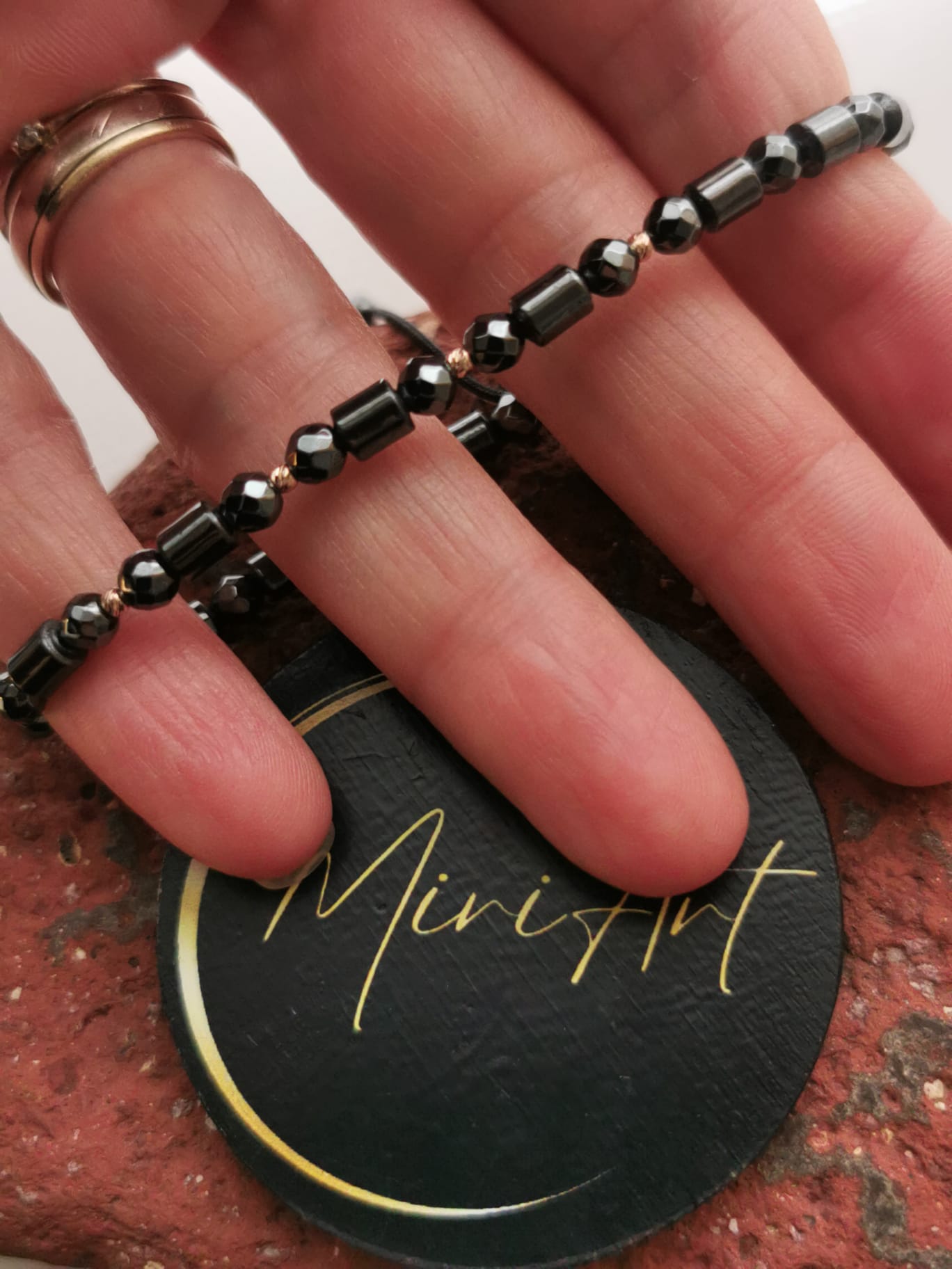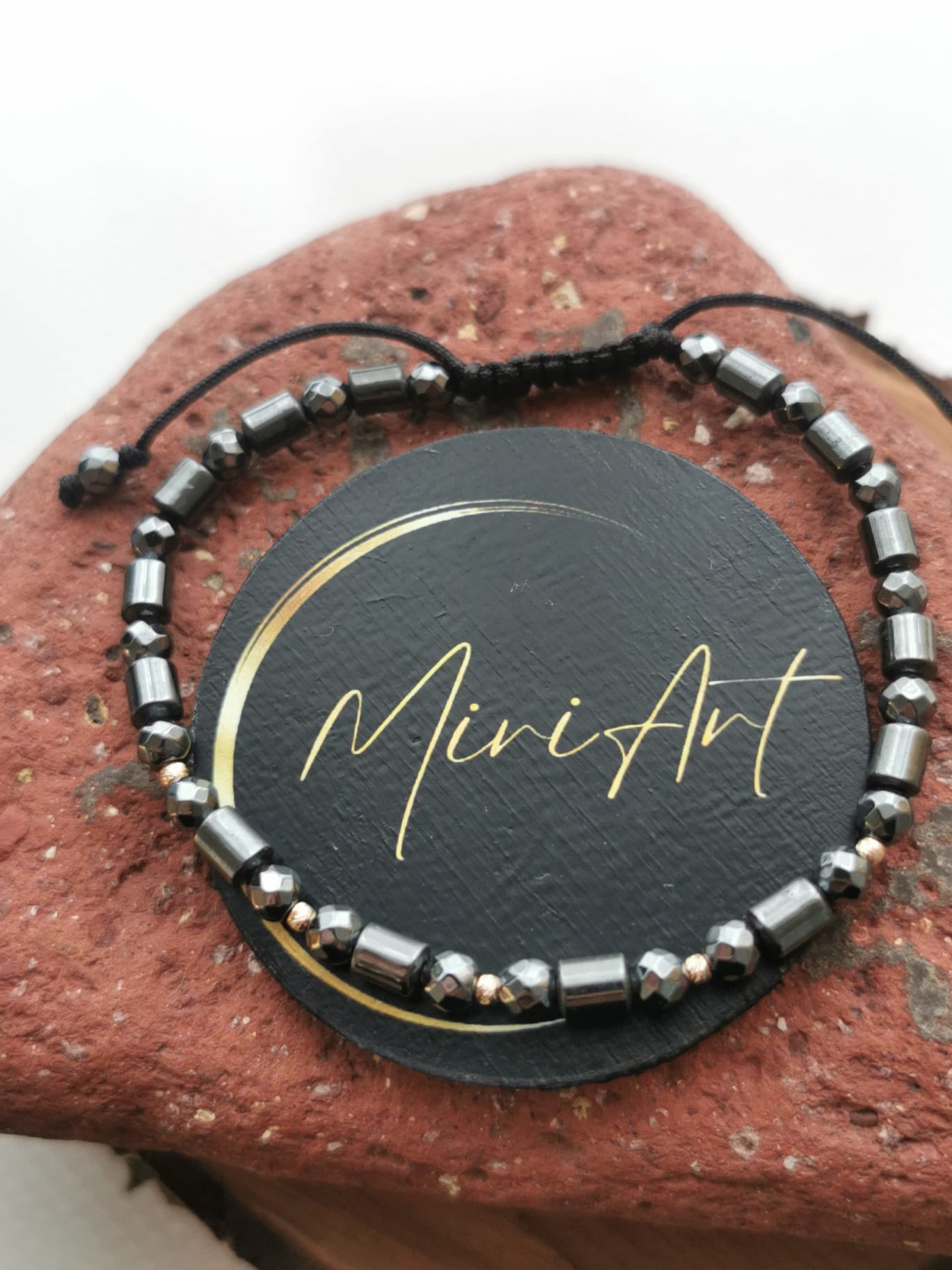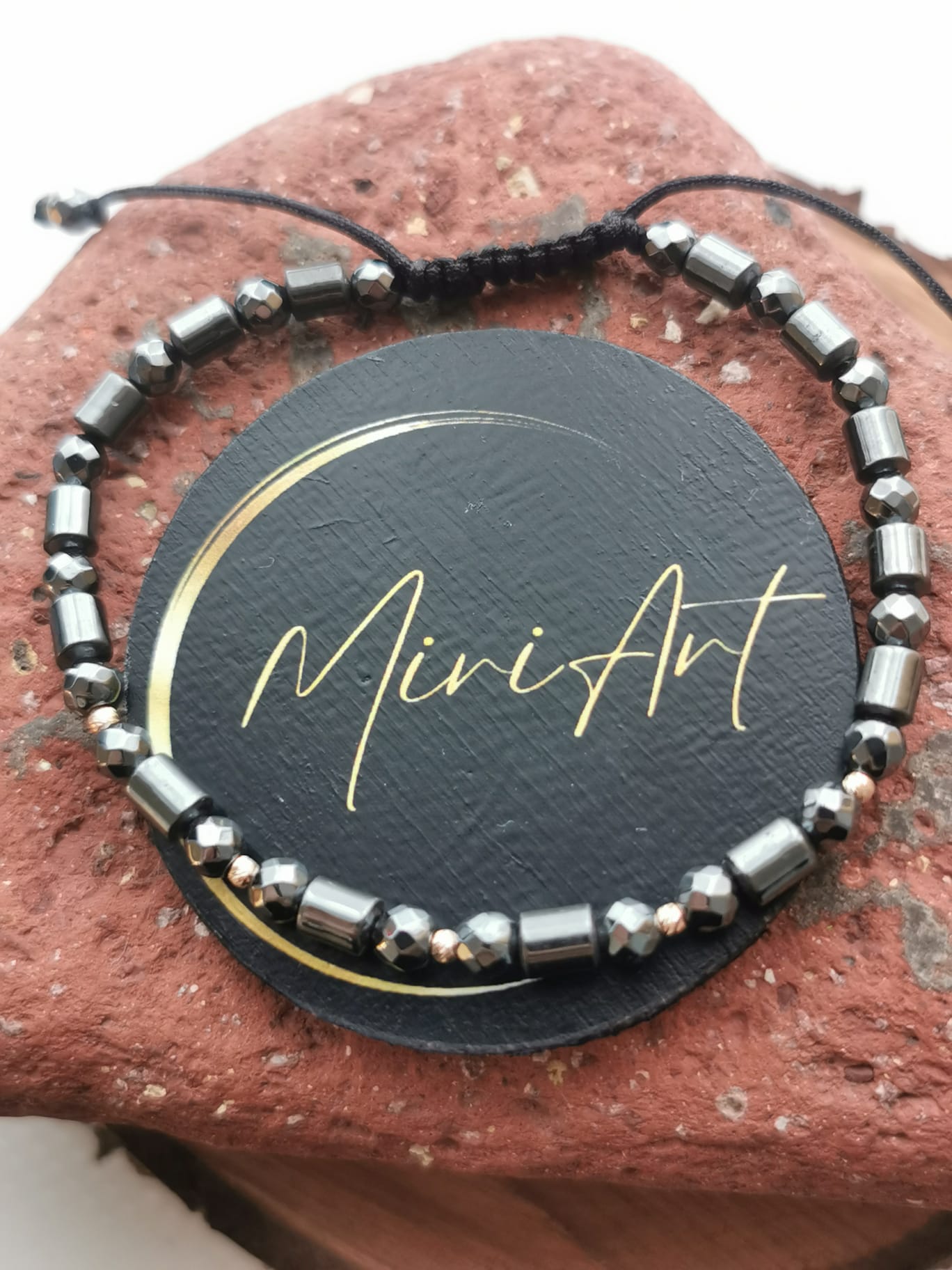 Brățara Strălucire Metalică realizată din Hematit – o piatră asociată cu echilibrul, energia stabilizatoare și claritatea mentală – această brățară aduce un plus de rafinament într-un design minimalist și modern.